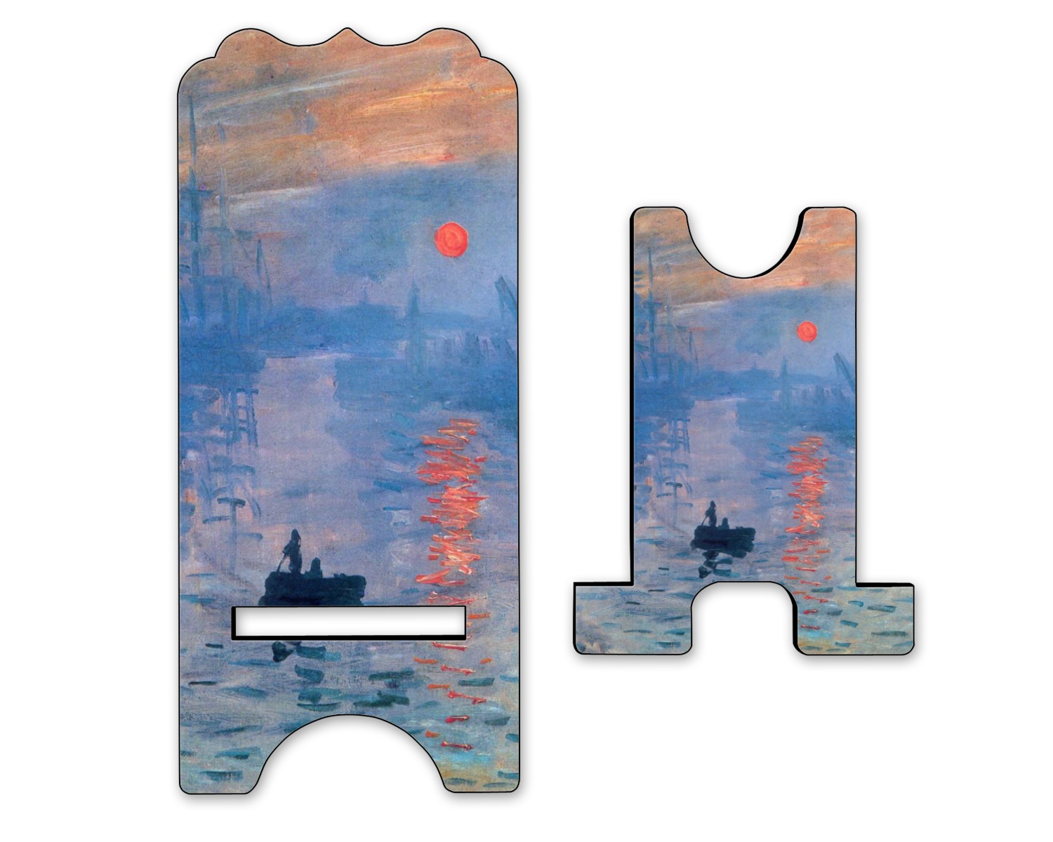 This beautiful painting, or a piece of this painting, will go quite nicely on any product of your choosing. The color palette will surely bring a calming sensation to whatever is decorated with this classic piece. If you love France, water, sunrises, or just the color blue, this design is the perfect choice for you.