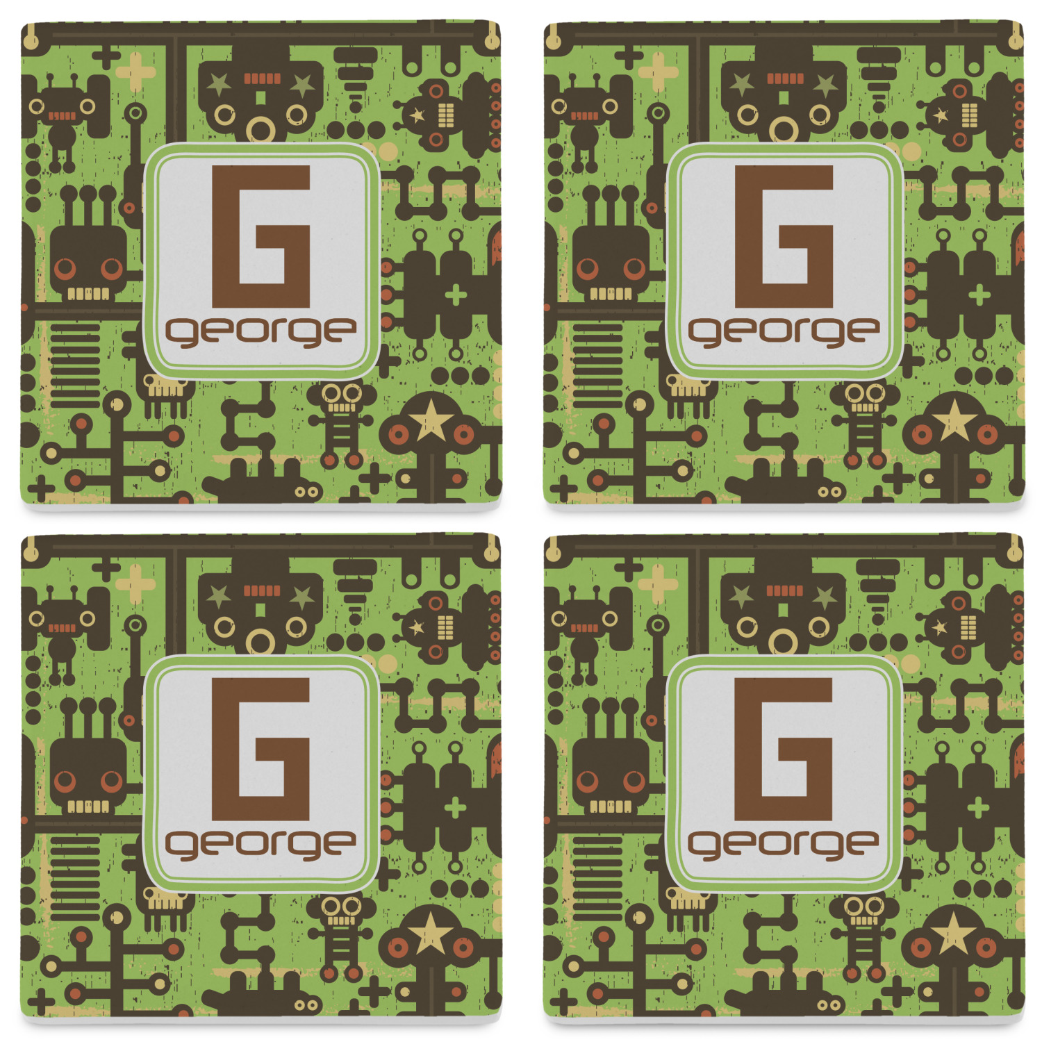 By default, the 4 coasters all have the same design on them, however, you can change that and have a different design on each one of the 4 coasters. The choice is yours.