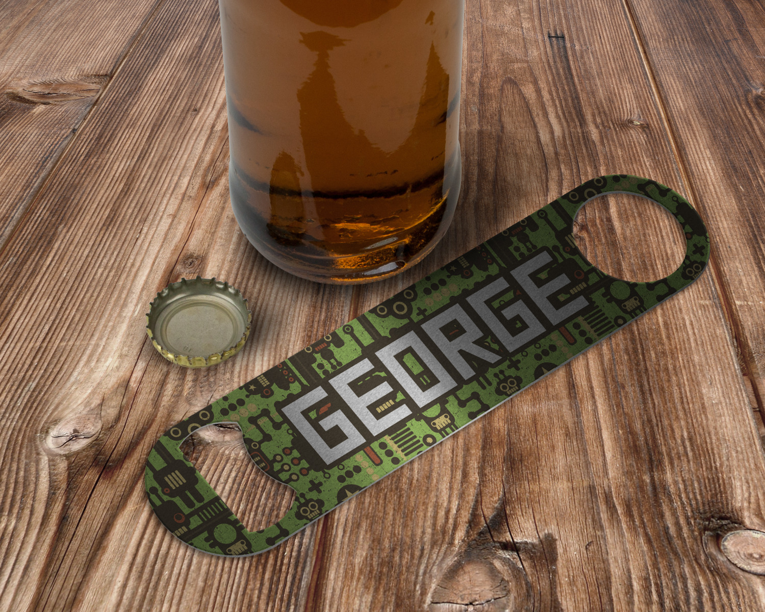 Stop struggling with the caps or your bottled beverages by purchasing one of our personalized bottle openers! These wrench-like custom bar blades are built to last. Customize one for your home's bar, or as a practical gift for a loved one!