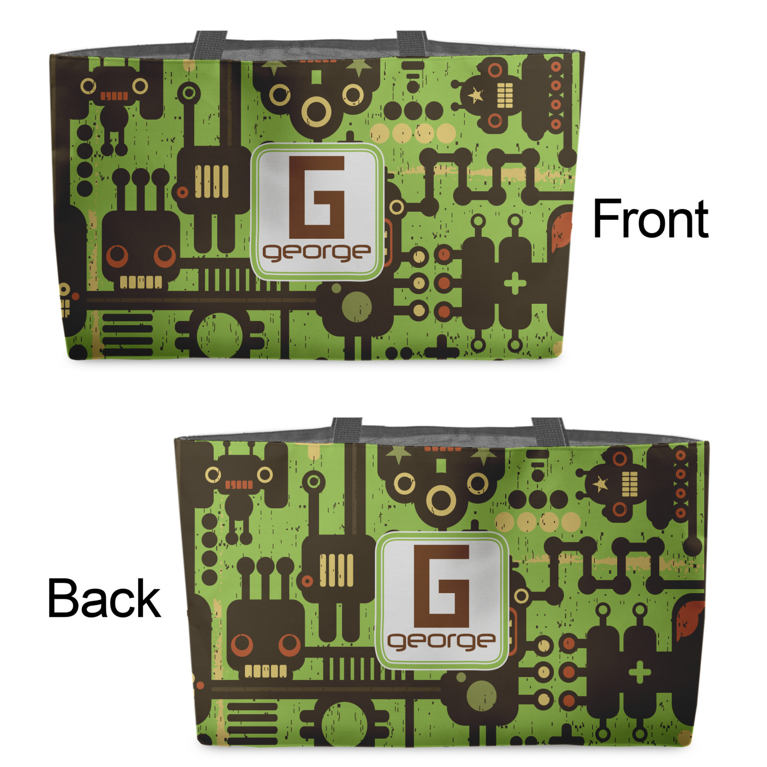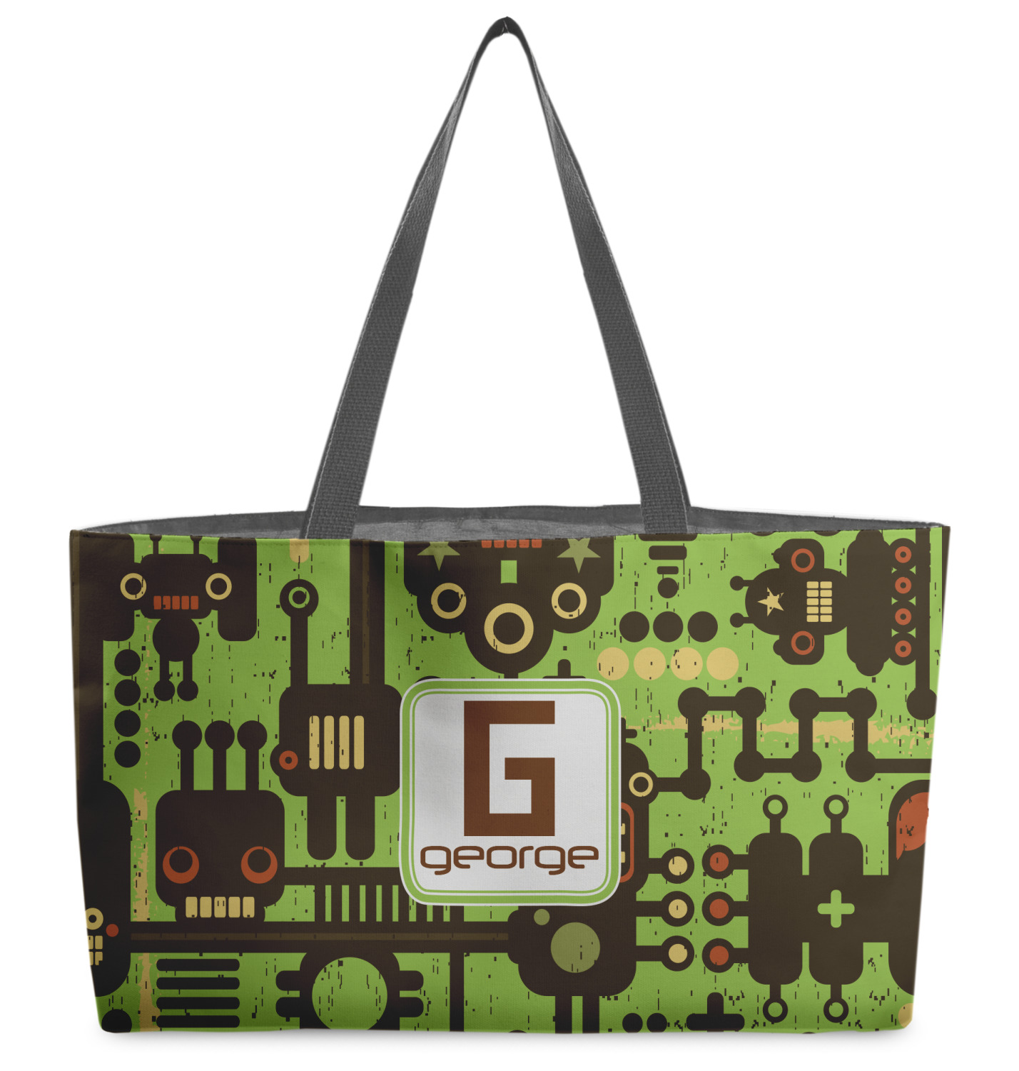 These beach totes are handmade here in the USA. Fabric is printed with your design. The tote is then sewn from the fabric pieces, lining and handles added.
