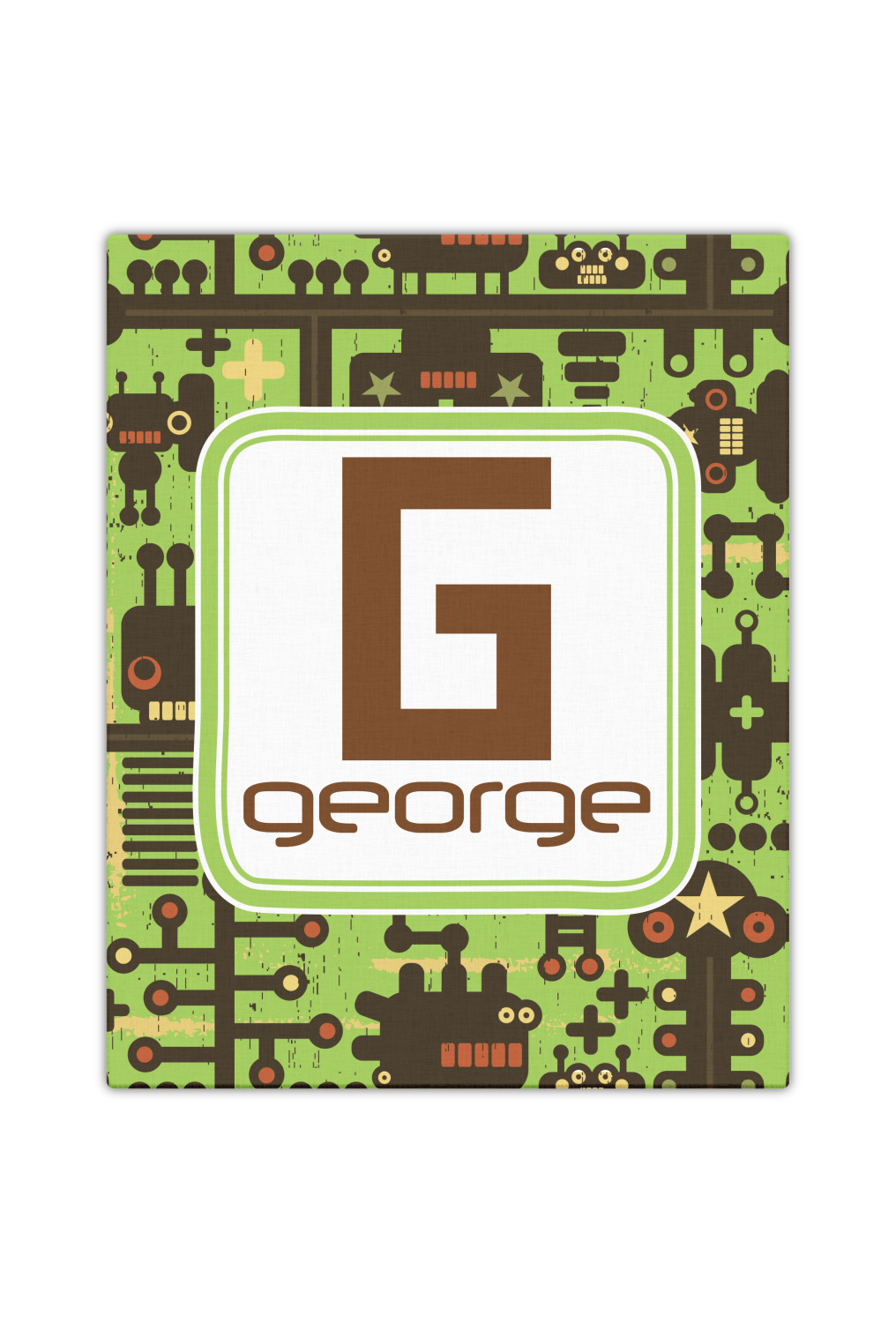 These retro robots will delight your little one and might even inspire their imagination! Brown robots of various sizes and shapes are set on a bright, lime-green background, with cool pipes and wiring adding to the whimsy.