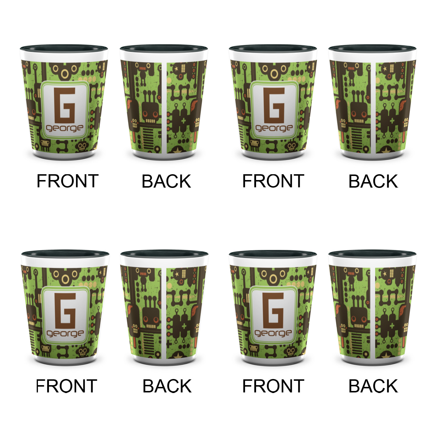 Made from ceramic these shot glasses are printed in full color with the design of your choice. These are a standard 1.5oz size and stand 2.25" tall. Available in a full white ceramic or a two-tone with a black color inside the shot glass. Buy a single or a set of 4, all of which can be designed separately to get you just what you want and need.