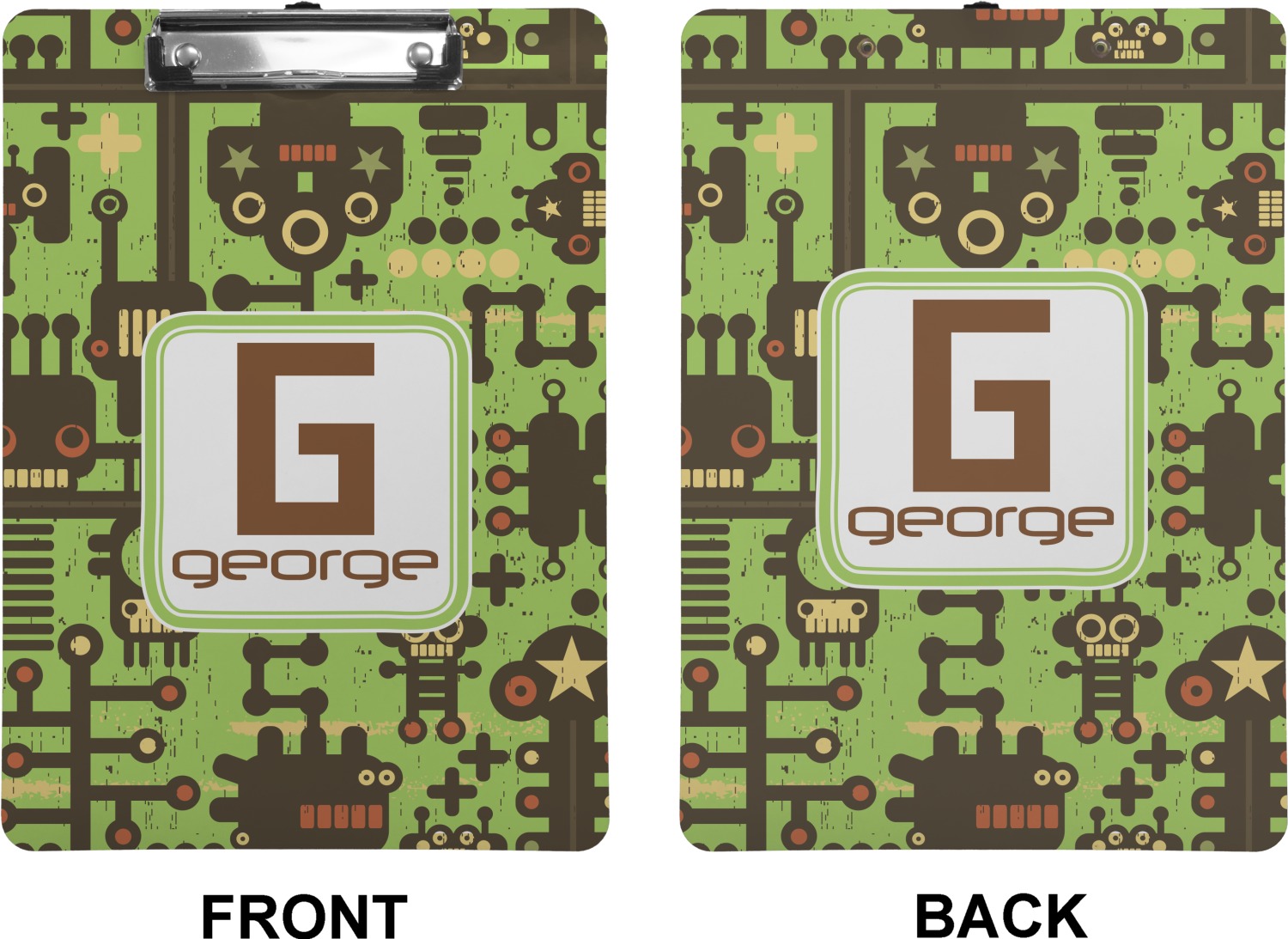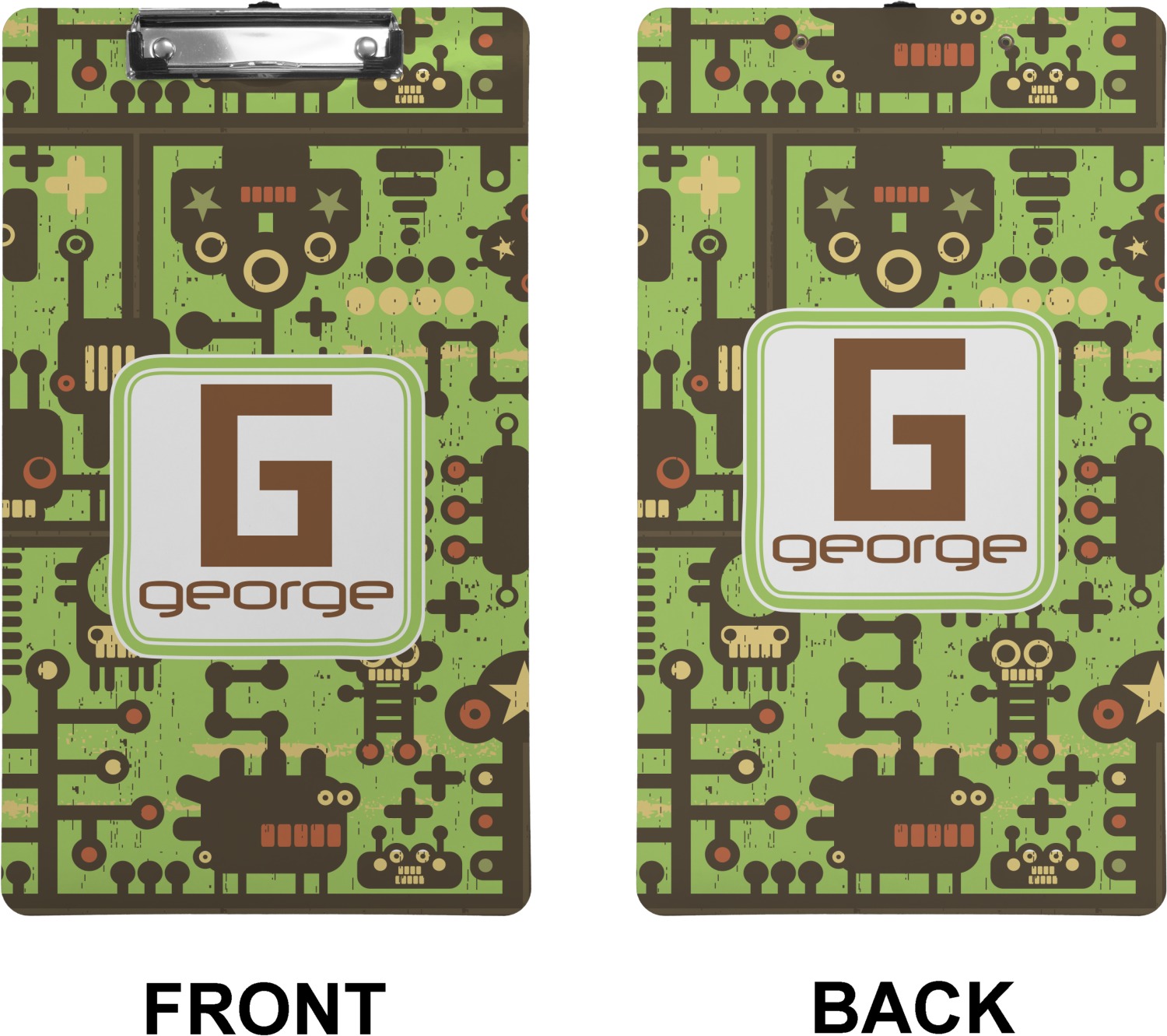 These custom clipboards are made from a strong hardboard and are coated with a glossy finish that accentuates the colors of your design. Alongside a retractable hook at its top, these decorative clipboards also feature sturdy clips to secure several sheets of paper. We sell these clipboards in two separate sizes. Our letter size measures at 12.5" L x 9" W, while our legal clipboard is approximately 15.5" L x 9" W. On both models, your personalization is printed on both sides of this clipboard and can be customized individually.