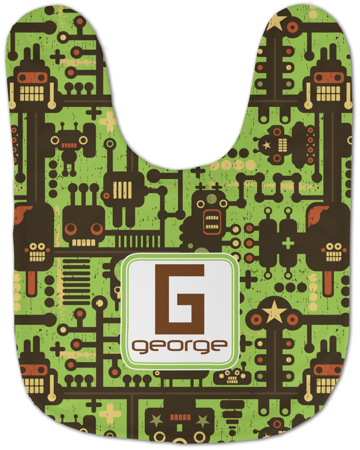 Made of soft polyester, each customizable bib hugs comfortably around the neck to catch every drip and drool. Each bib design is printed with baby-safe ink and finished with a secure stitch pattern and velcro clasp. We carry two customizable bib styles -Microfiber Velour and Jersey Knit.