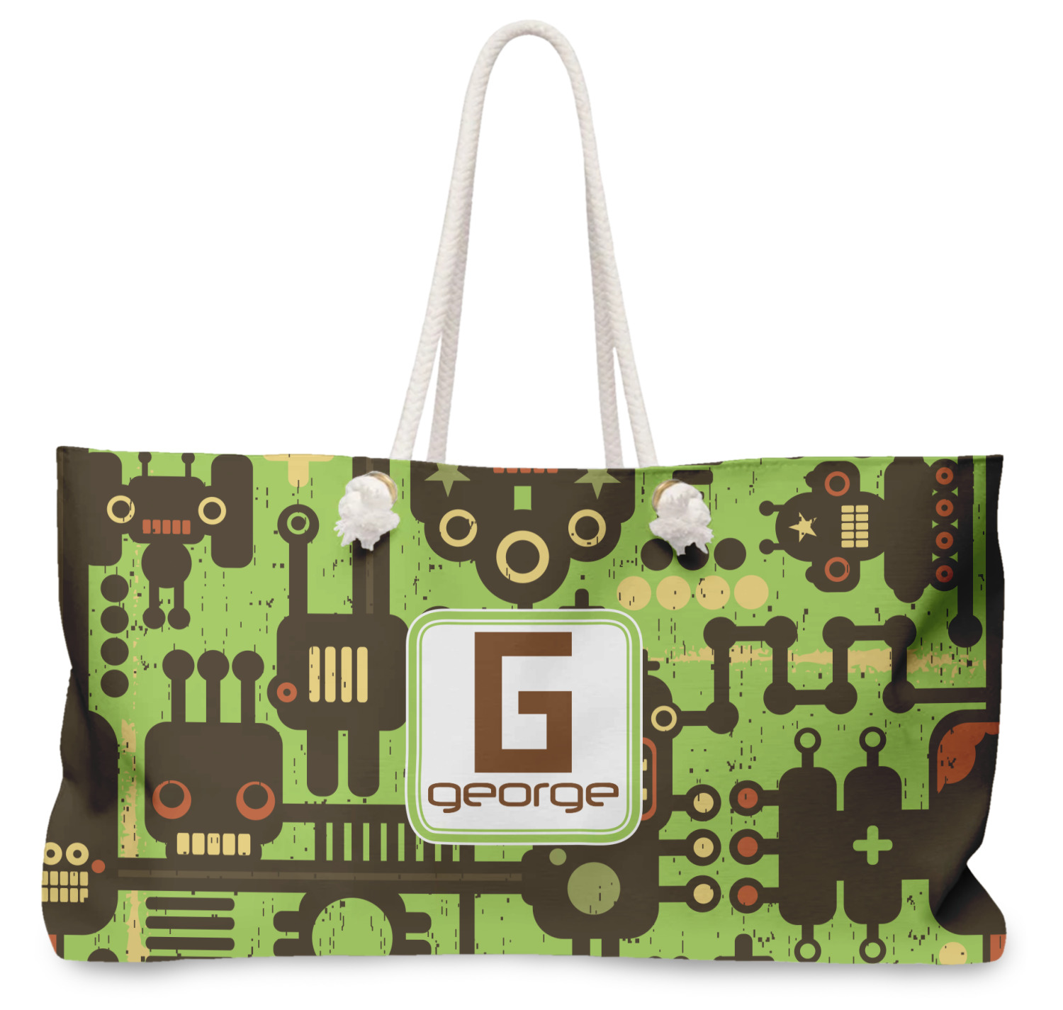These weekender totes can be customized front and back. The totes are full all over print - so the choice of how background are endless - from beautiful floral or leaf patterns to geometrics or some classic Van Gogh artwork - the possibilities are endless. The totes can also be decorated with photos and logos.