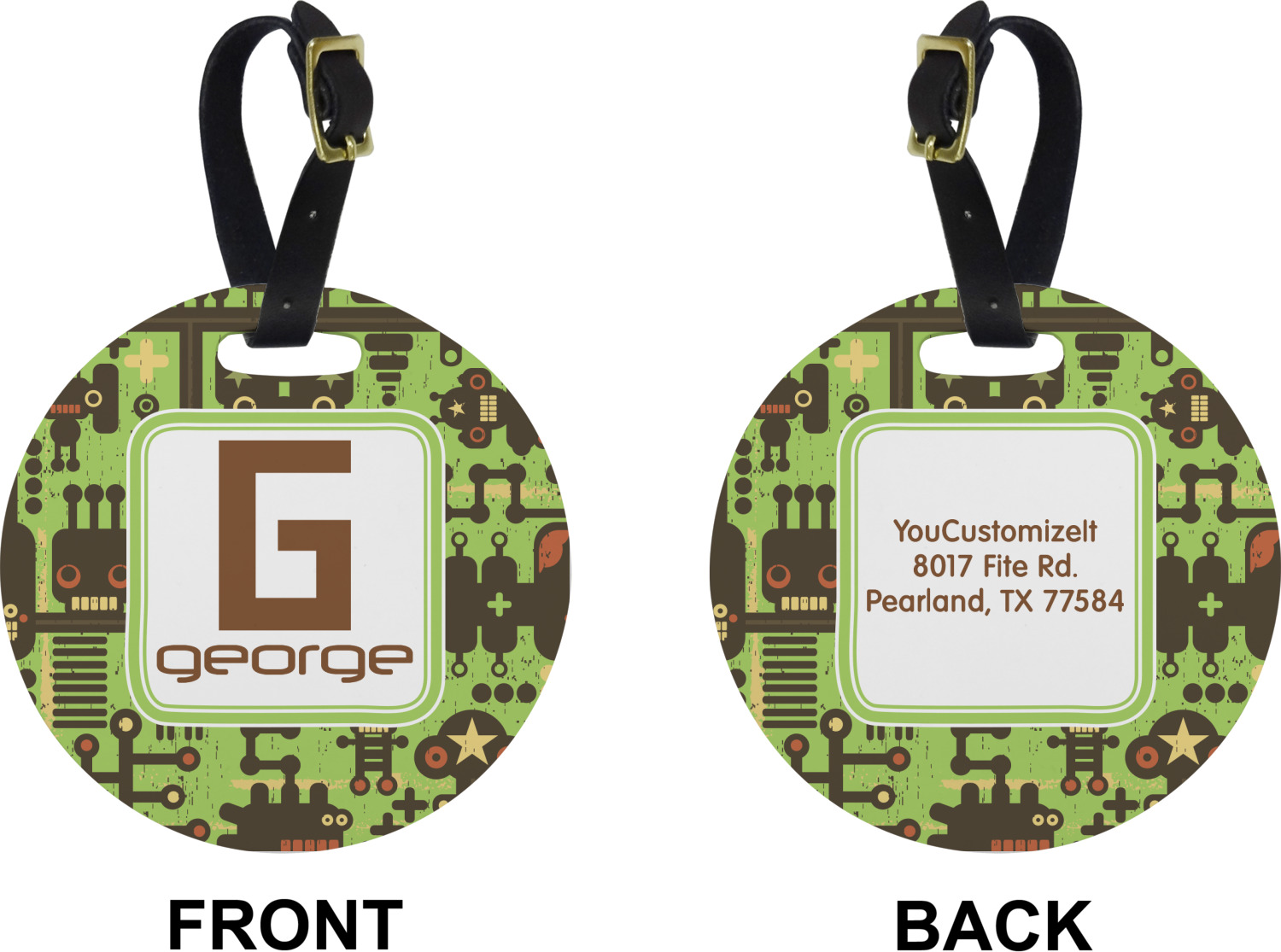 These cute luggage tags are made of a fiber-reinforced, UV-resistant plastic, making them waterproof and durable enough for both everyday use and the rugged adventures of any traveler! A leather strap with holes and a buckle is included with your purchase and can be used to attach your custom luggage tag to any suitcase, backpack, or duffel bag. You can design these travel tags as you wish; your customization will be displayed across the front, while the back will show as little or as much personal information as you want.