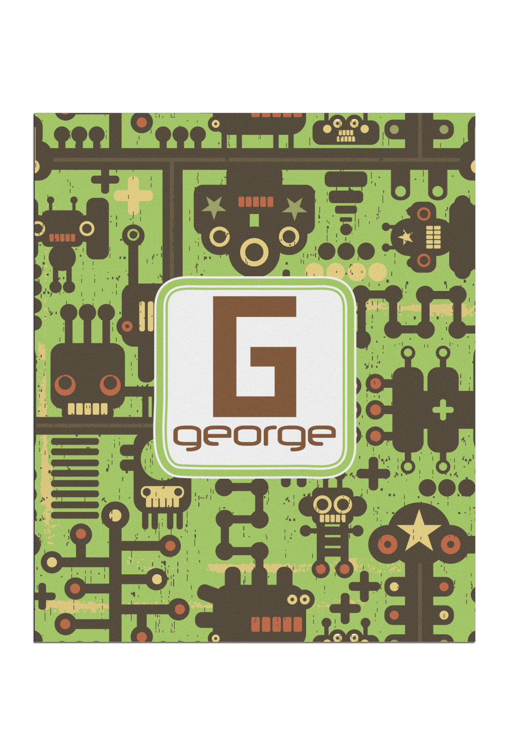 These retro robots will delight your little one and might even inspire their imagination! Brown robots of various sizes and shapes are set on a bright, lime-green background, with cool pipes and wiring adding to the whimsy.