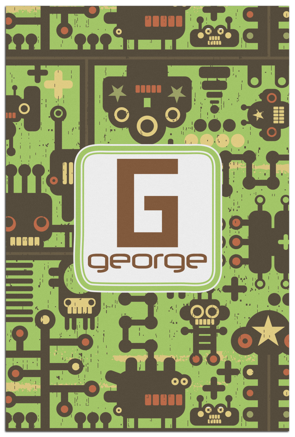 These retro robots will delight your little one and might even inspire their imagination! Brown robots of various sizes and shapes are set on a bright, lime-green background, with cool pipes and wiring adding to the whimsy.