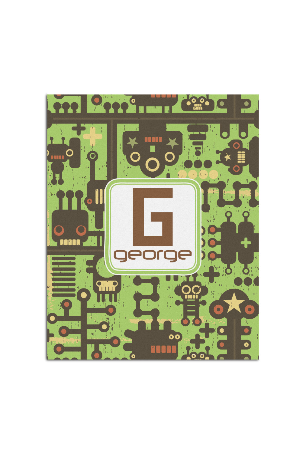 These retro robots will delight your little one and might even inspire their imagination! Brown robots of various sizes and shapes are set on a bright, lime-green background, with cool pipes and wiring adding to the whimsy.
