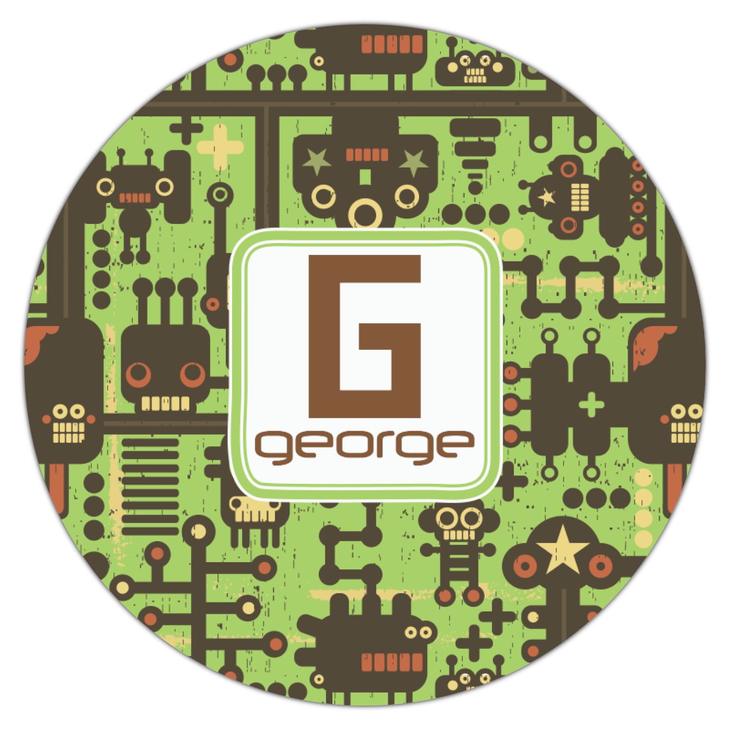 These retro robots will delight your little one and might even inspire their imagination! Brown robots of various sizes and shapes are set on a bright, lime-green background, with cool pipes and wiring adding to the whimsy.
