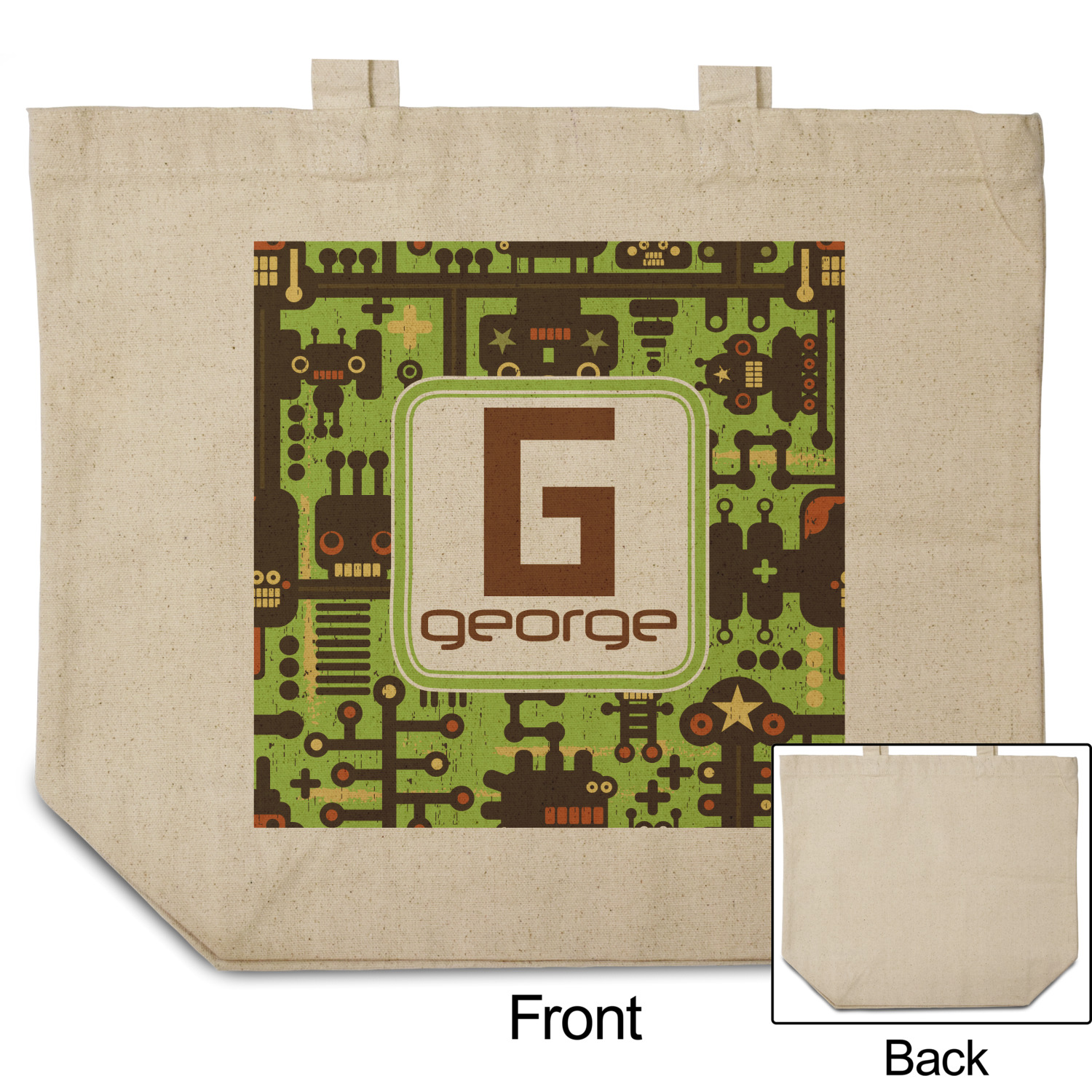 These cotton totes are washable and easy to care for, and they can be folded flat for storage. Your artwork, logo, or photo is printed in full color directly on the cotton tote in the front.