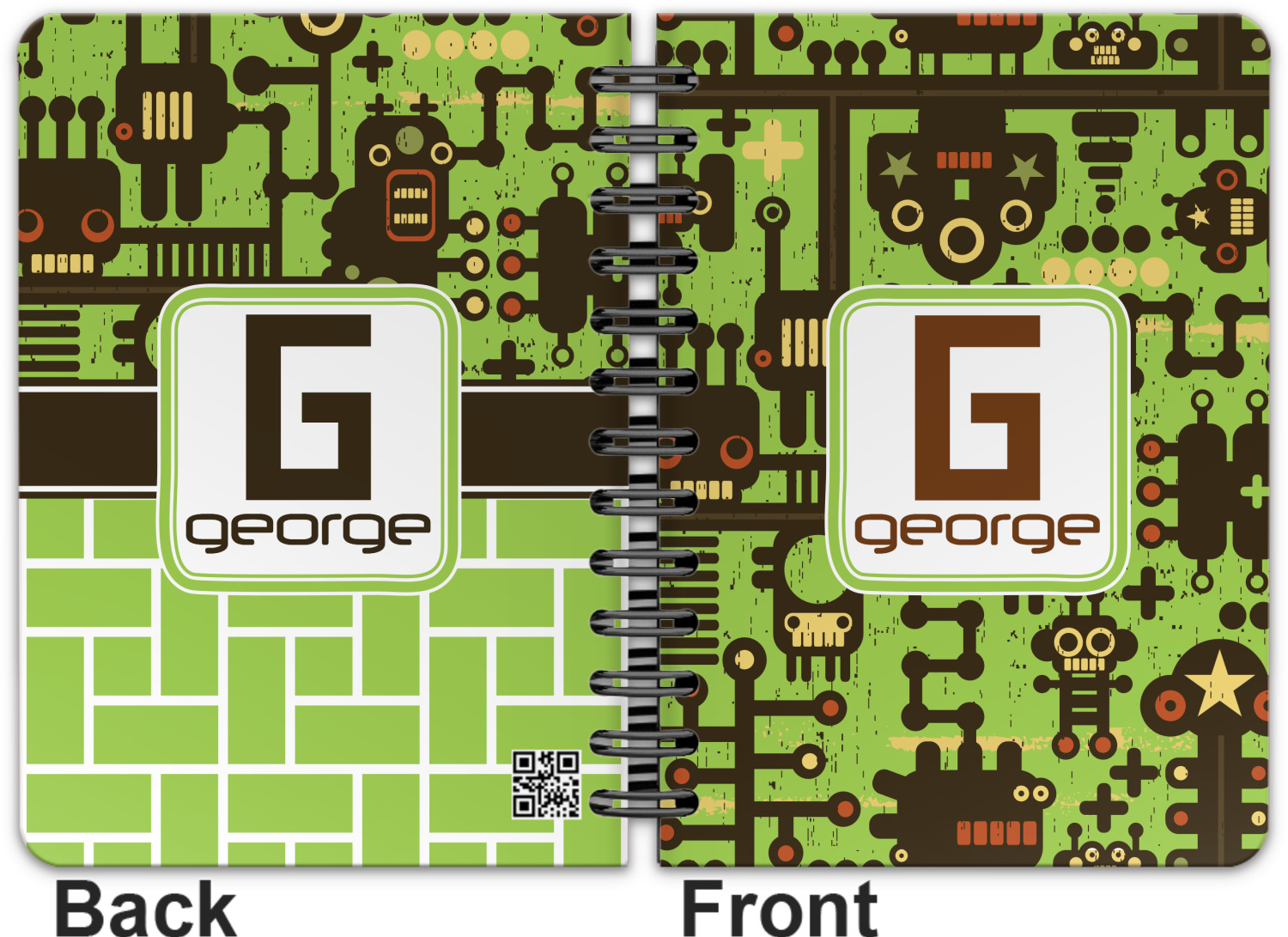 This spiral notebook includes 75 sheets of thick, ruled paper. The front and back of this custom notebook is made of a robust, laminate, plastic covering. We print your personalization on these two panels, underneath a glossy finish, which emphasizes the colors of your design. The two panels and the sheets of paper are held together by a sturdy, black coil. The paper within your bound notebook is perforated for easy, clean tearing.