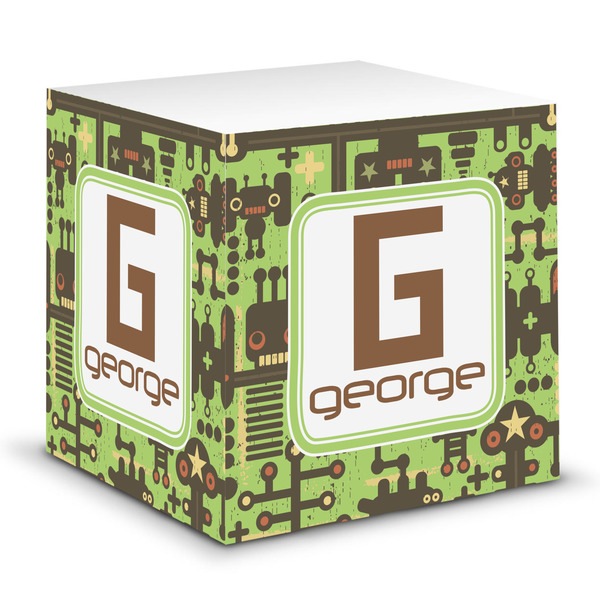 This note cube features 700 sheets of matte, white paper. Each sheet measures at 3.5 by 3.5 inches and has an adhesive strip at its top. Your personalized design is displayed on all four edges of the sticky pad.