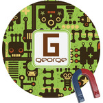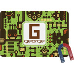 These retro robots will delight your little one and might even inspire their imagination! Brown robots of various sizes and shapes are set on a bright, lime-green background, with cool pipes and wiring adding to the whimsy.
