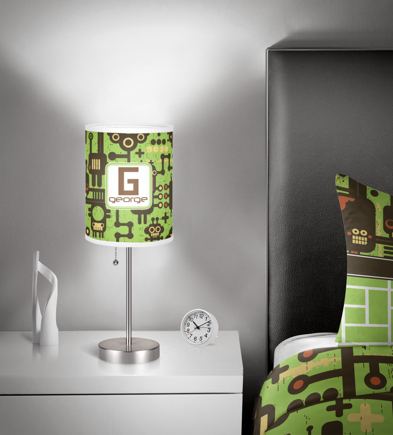 These retro robots will delight your little one and might even inspire their imagination! Brown robots of various sizes and shapes are set on a bright, lime-green background, with cool pipes and wiring adding to the whimsy.