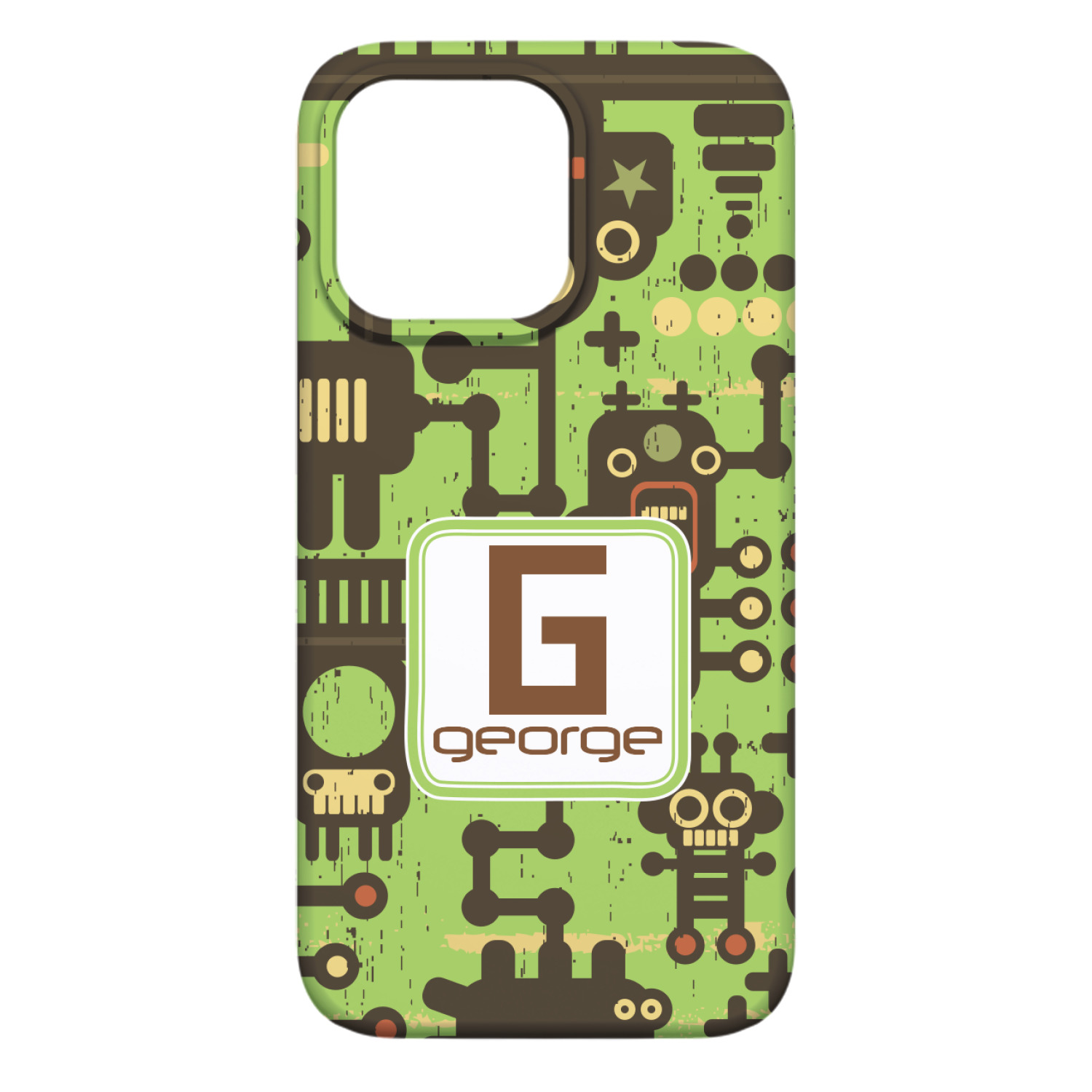 These retro robots will delight your little one and might even inspire their imagination! Brown robots of various sizes and shapes are set on a bright, lime-green background, with cool pipes and wiring adding to the whimsy.