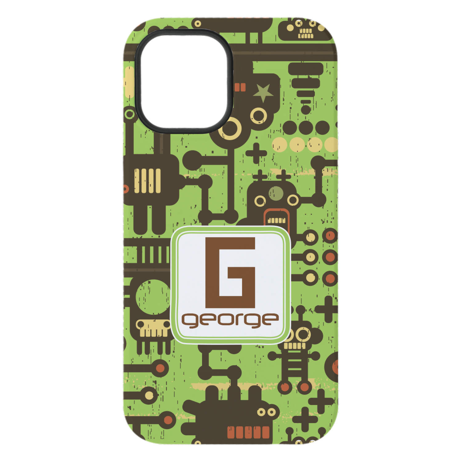 These retro robots will delight your little one and might even inspire their imagination! Brown robots of various sizes and shapes are set on a bright, lime-green background, with cool pipes and wiring adding to the whimsy.