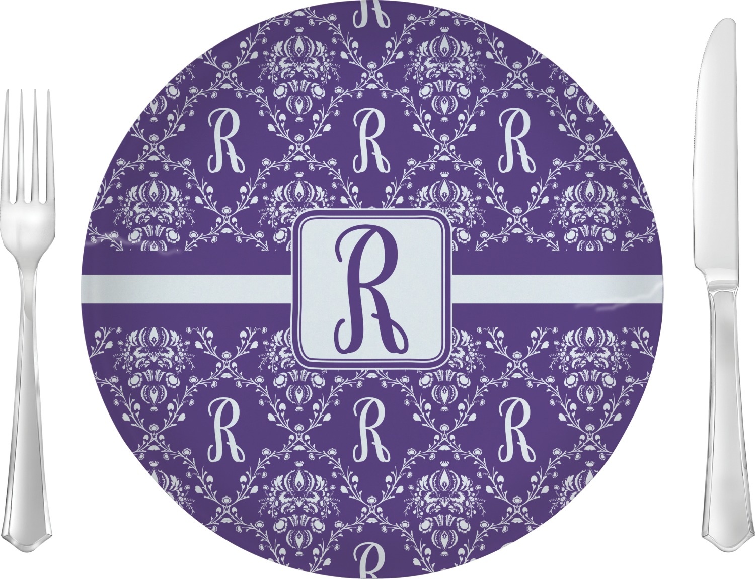 A touch of elegance at its best. The white Damask pattern pops against the backdrop of this rich purple. Personalized with your initial adds that touch of pride to the design. A wide band of purple and white break up the design to make it pleasing to the eye.