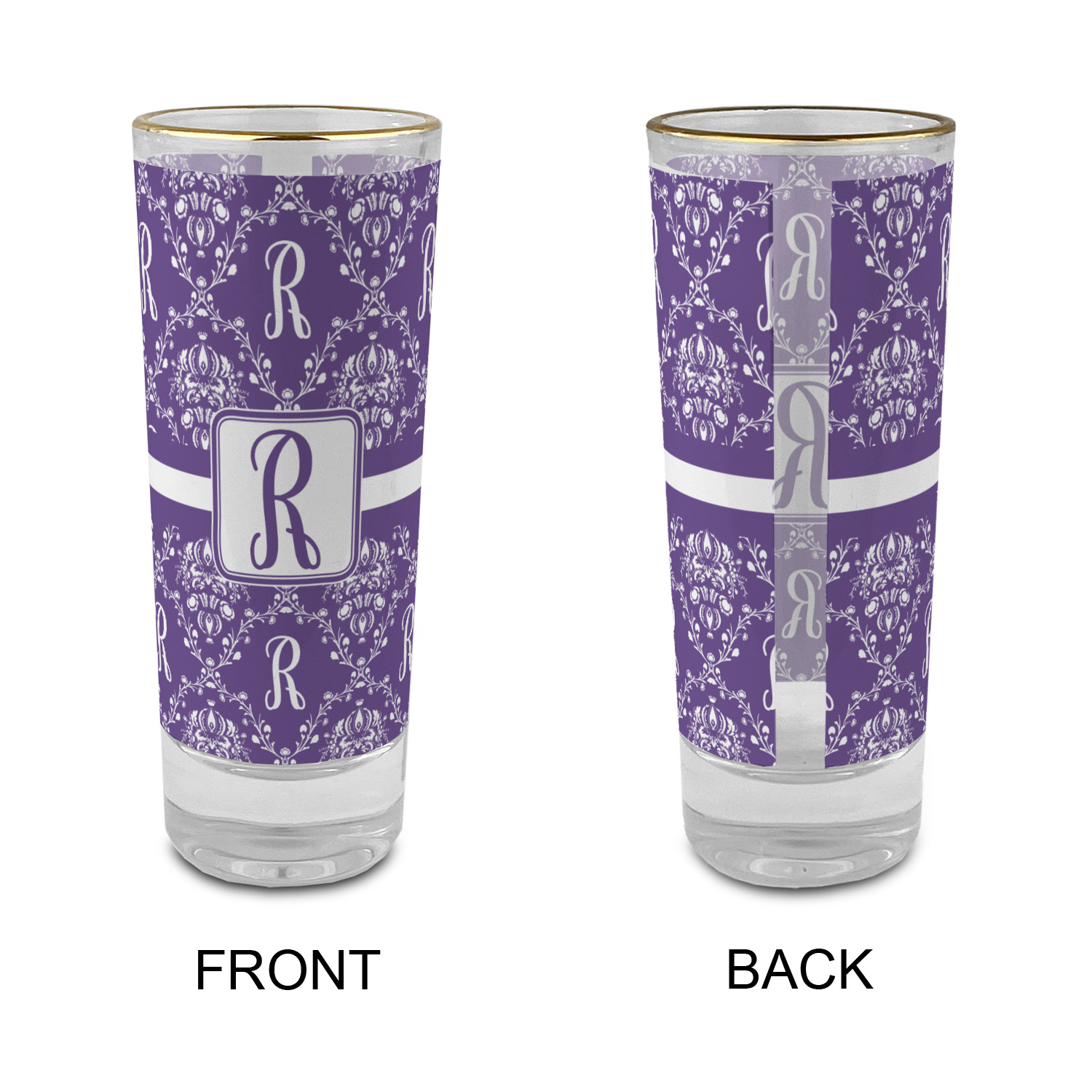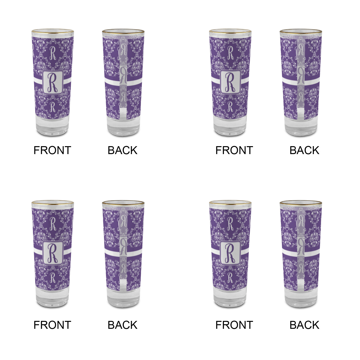 These glass shooter glasses are printed in full color with the design of your choice. These are a tall shooter 2 oz size and stand 4" tall. The print is a full wrap design to boldly display your personalization.