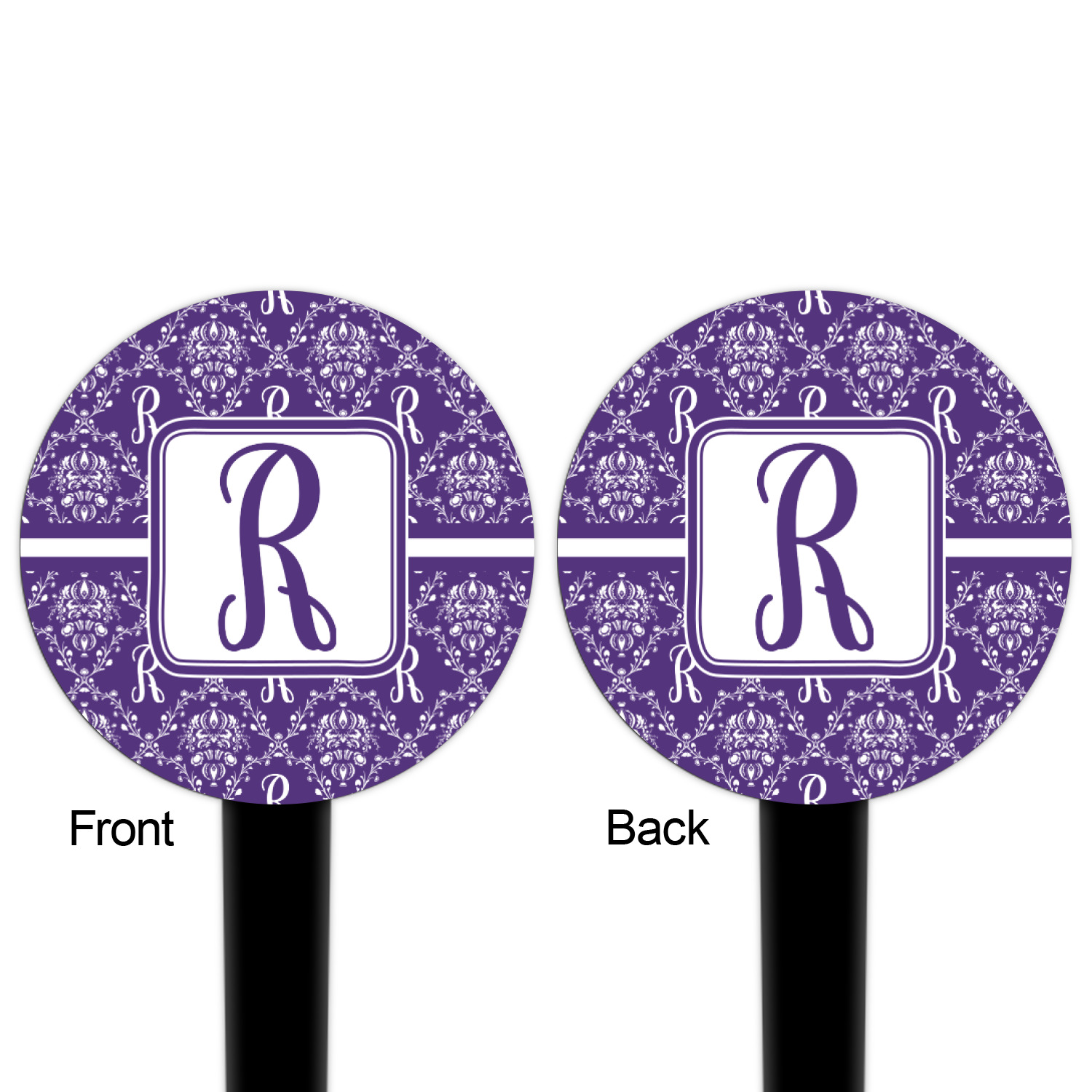 A touch of elegance at its best. The white Damask pattern pops against the backdrop of this rich purple. Personalized with your initial adds that touch of pride to the design. A wide band of purple and white break up the design to make it pleasing to the eye.