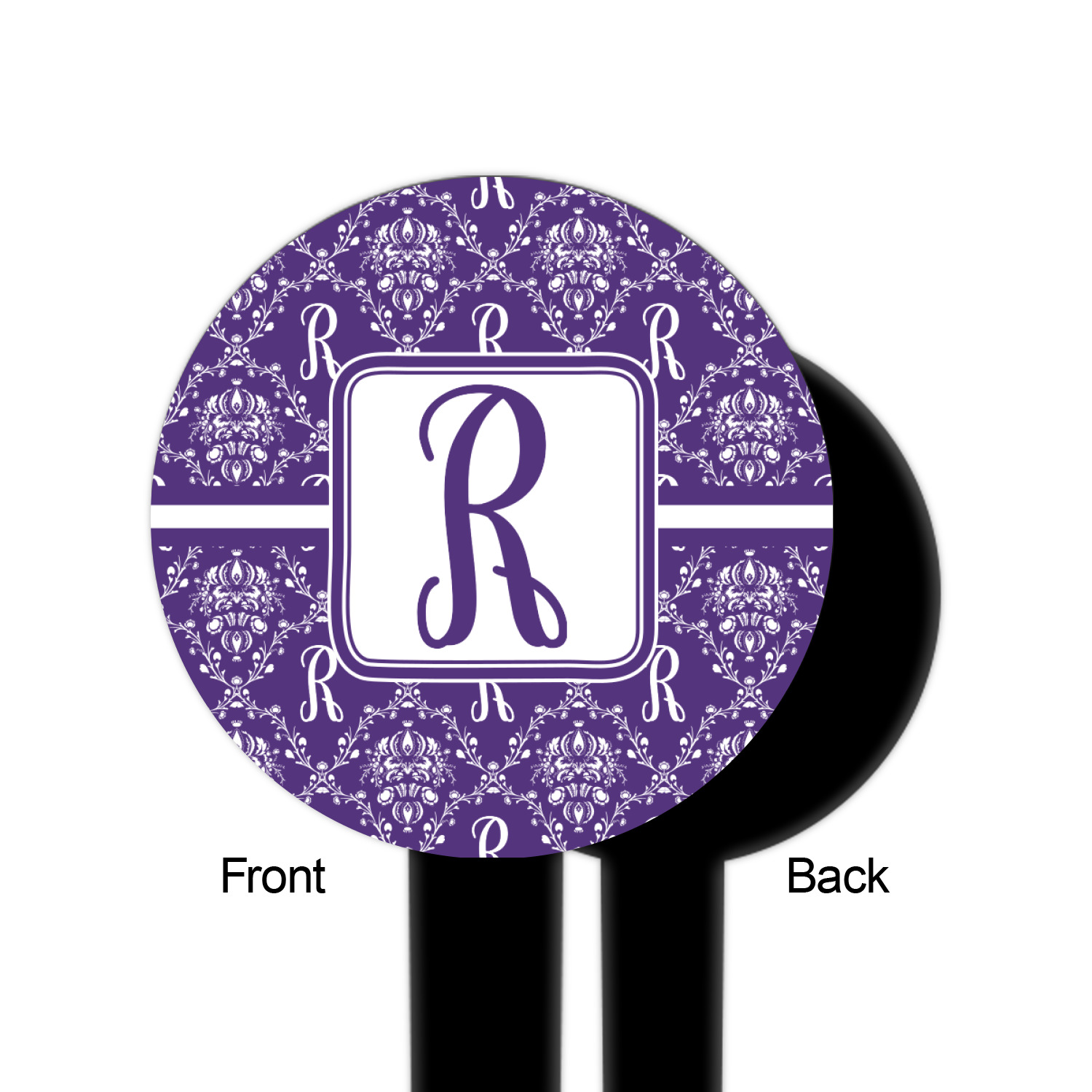 A touch of elegance at its best. The white Damask pattern pops against the backdrop of this rich purple. Personalized with your initial adds that touch of pride to the design. A wide band of purple and white break up the design to make it pleasing to the eye.