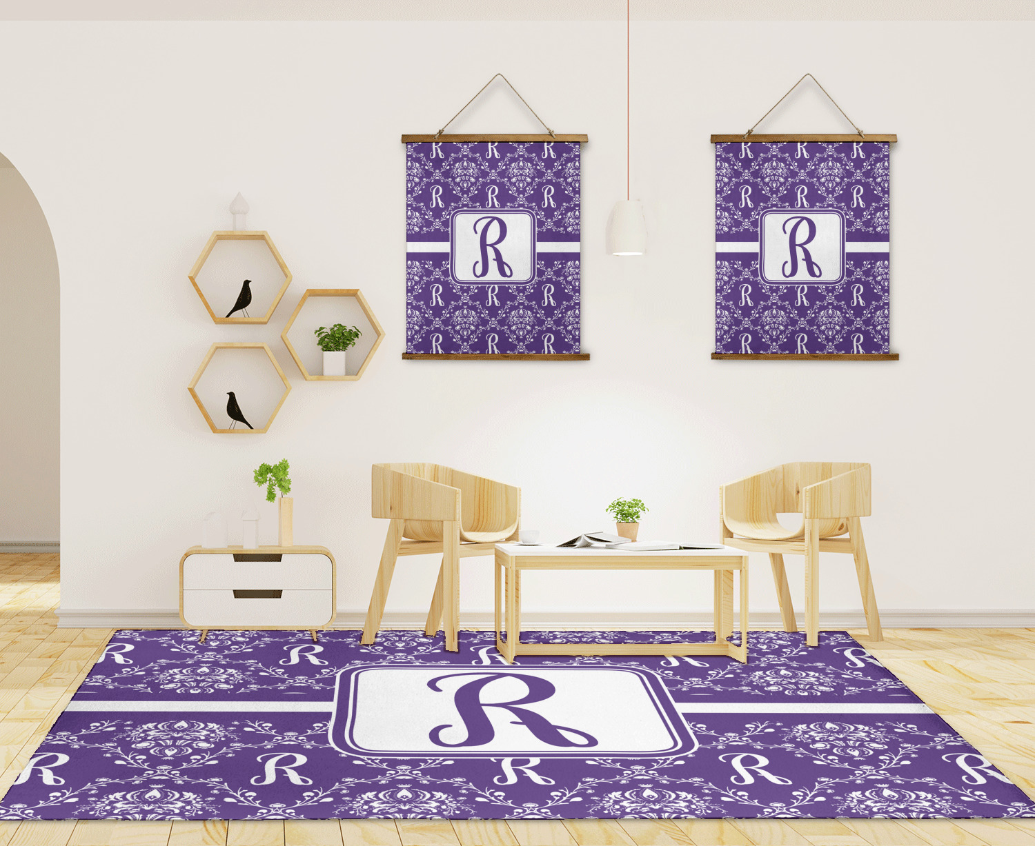A touch of elegance at its best. The white Damask pattern pops against the backdrop of this rich purple. Personalized with your initial adds that touch of pride to the design. A wide band of purple and white break up the design to make it pleasing to the eye.