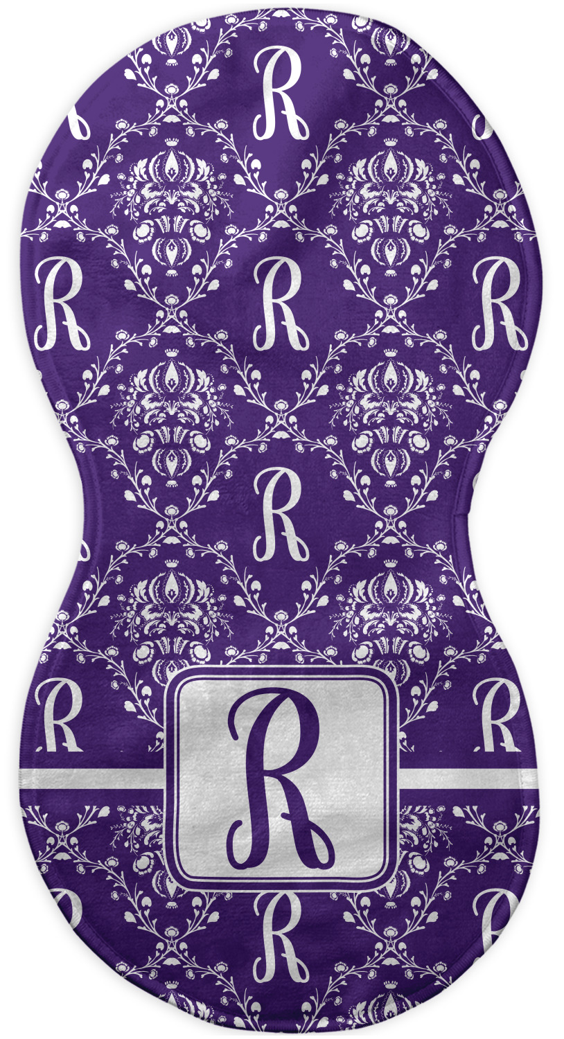 A touch of elegance at its best. The white Damask pattern pops against the backdrop of this rich purple. Personalized with your initial adds that touch of pride to the design. A wide band of purple and white break up the design to make it pleasing to the eye.