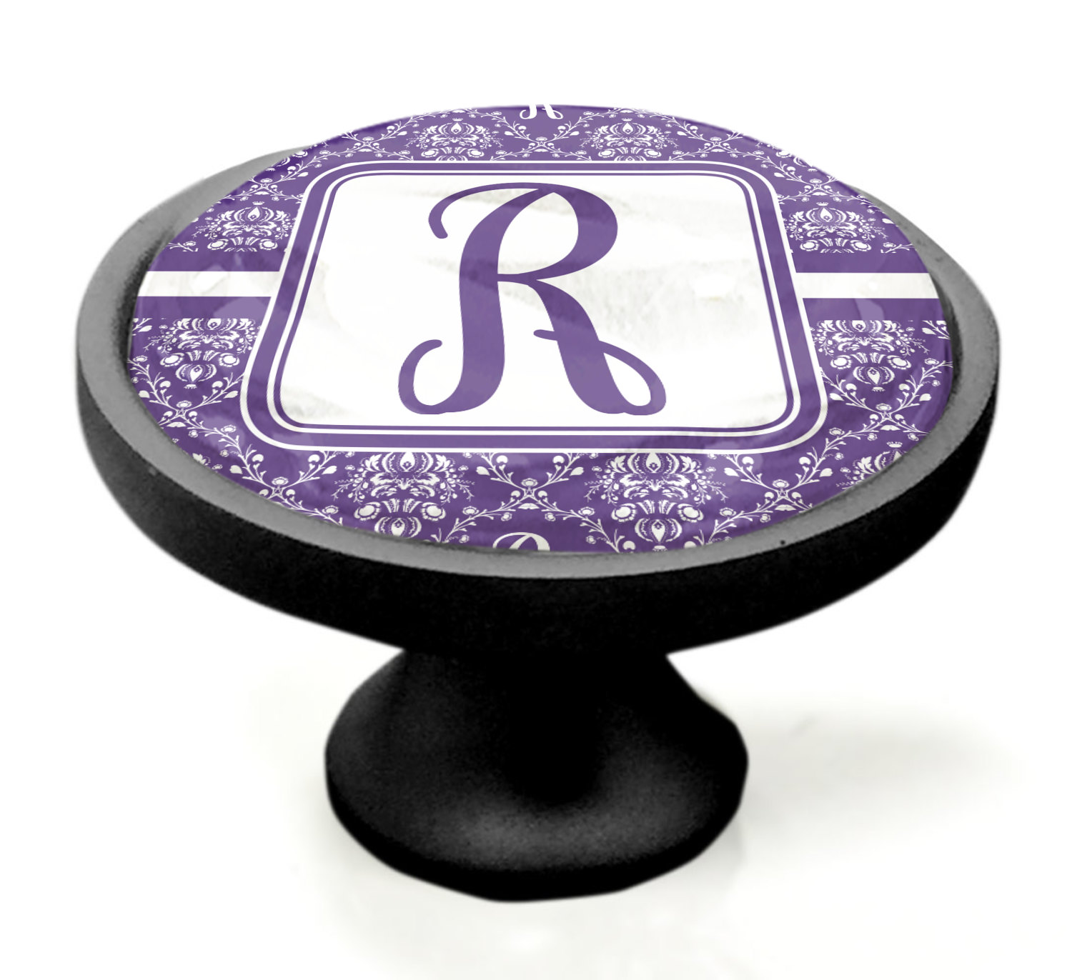 A touch of elegance at its best. The white Damask pattern pops against the backdrop of this rich purple. Personalized with your initial adds that touch of pride to the design. A wide band of purple and white break up the design to make it pleasing to the eye.