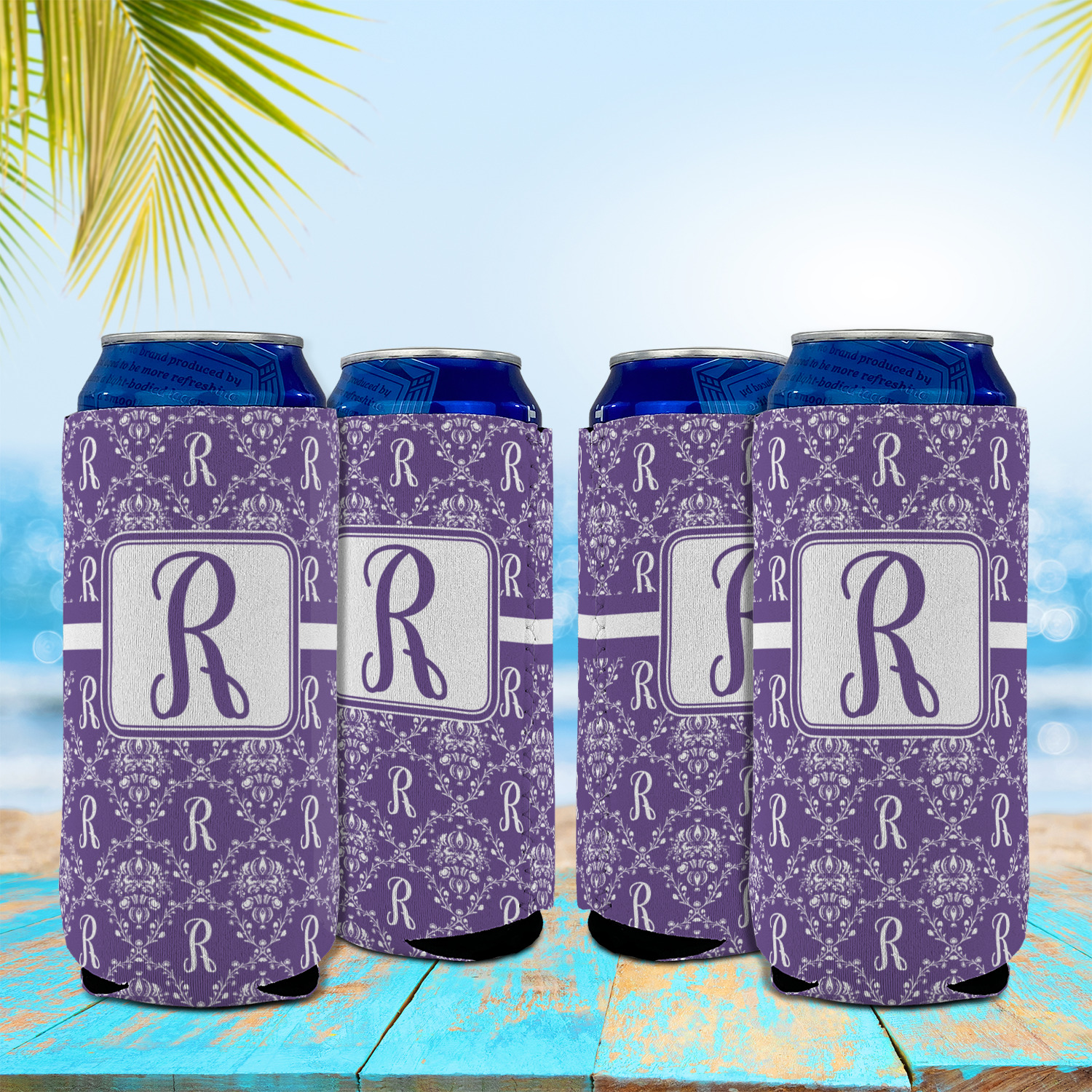 A touch of elegance at its best. The white Damask pattern pops against the backdrop of this rich purple. Personalized with your initial adds that touch of pride to the design. A wide band of purple and white break up the design to make it pleasing to the eye.