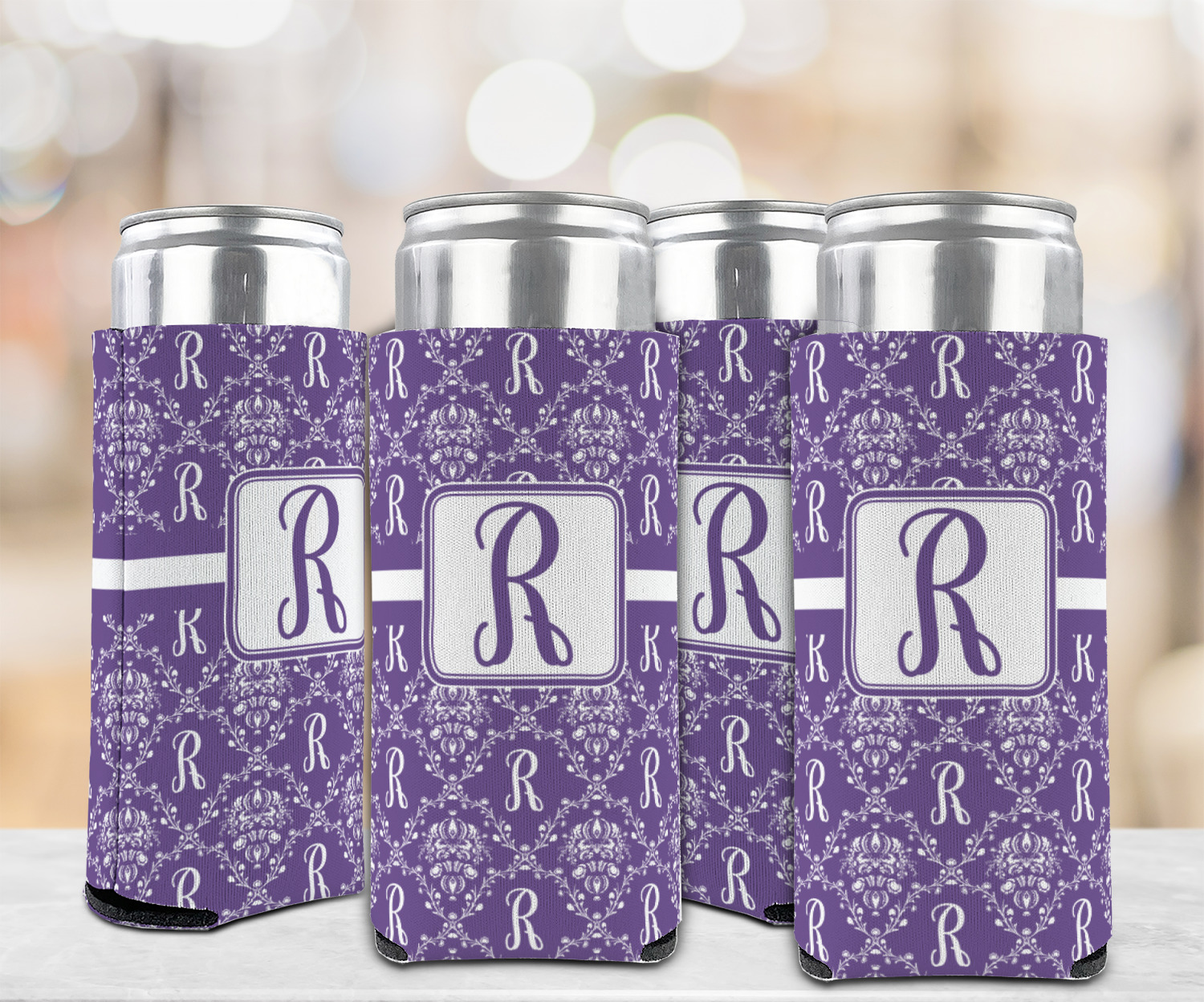 A touch of elegance at its best. The white Damask pattern pops against the backdrop of this rich purple. Personalized with your initial adds that touch of pride to the design. A wide band of purple and white break up the design to make it pleasing to the eye.