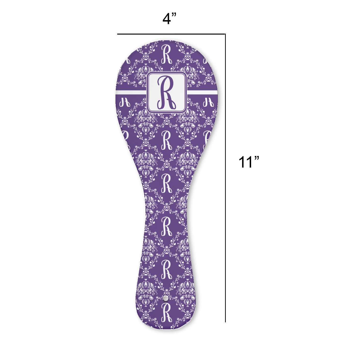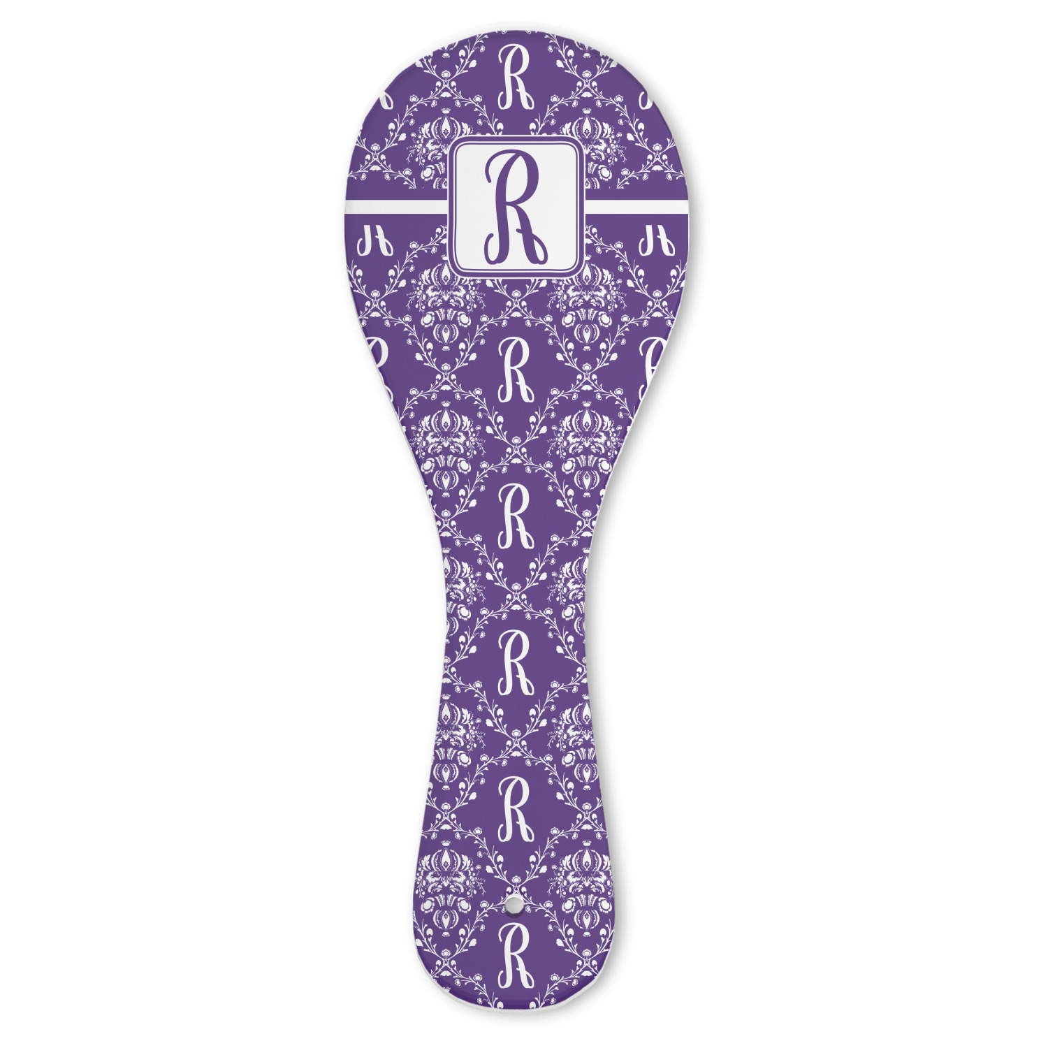 A touch of elegance at its best. The white Damask pattern pops against the backdrop of this rich purple. Personalized with your initial adds that touch of pride to the design. A wide band of purple and white break up the design to make it pleasing to the eye.
