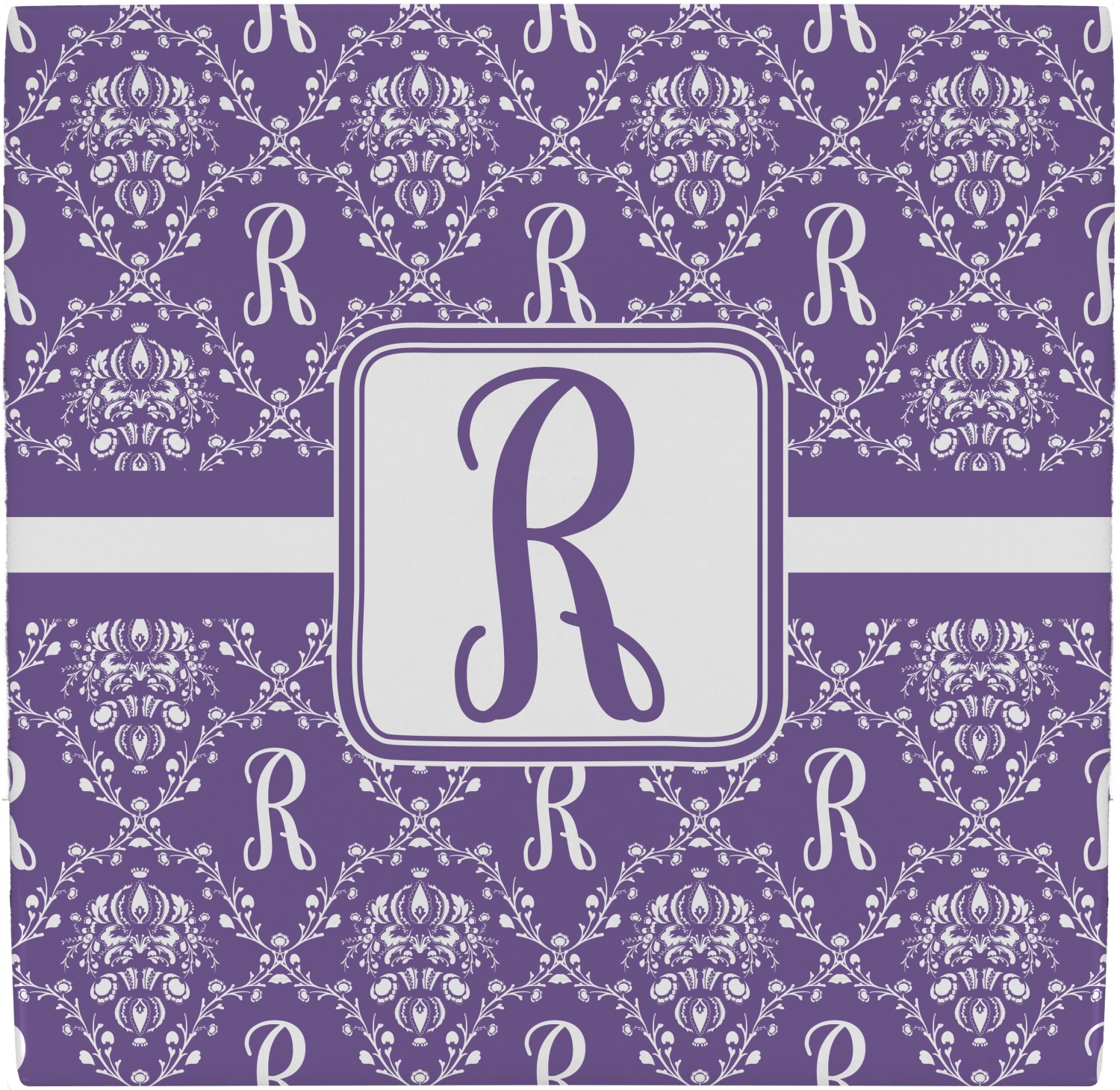 A touch of elegance at its best. The white Damask pattern pops against the backdrop of this rich purple. Personalized with your initial adds that touch of pride to the design. A wide band of purple and white break up the design to make it pleasing to the eye.