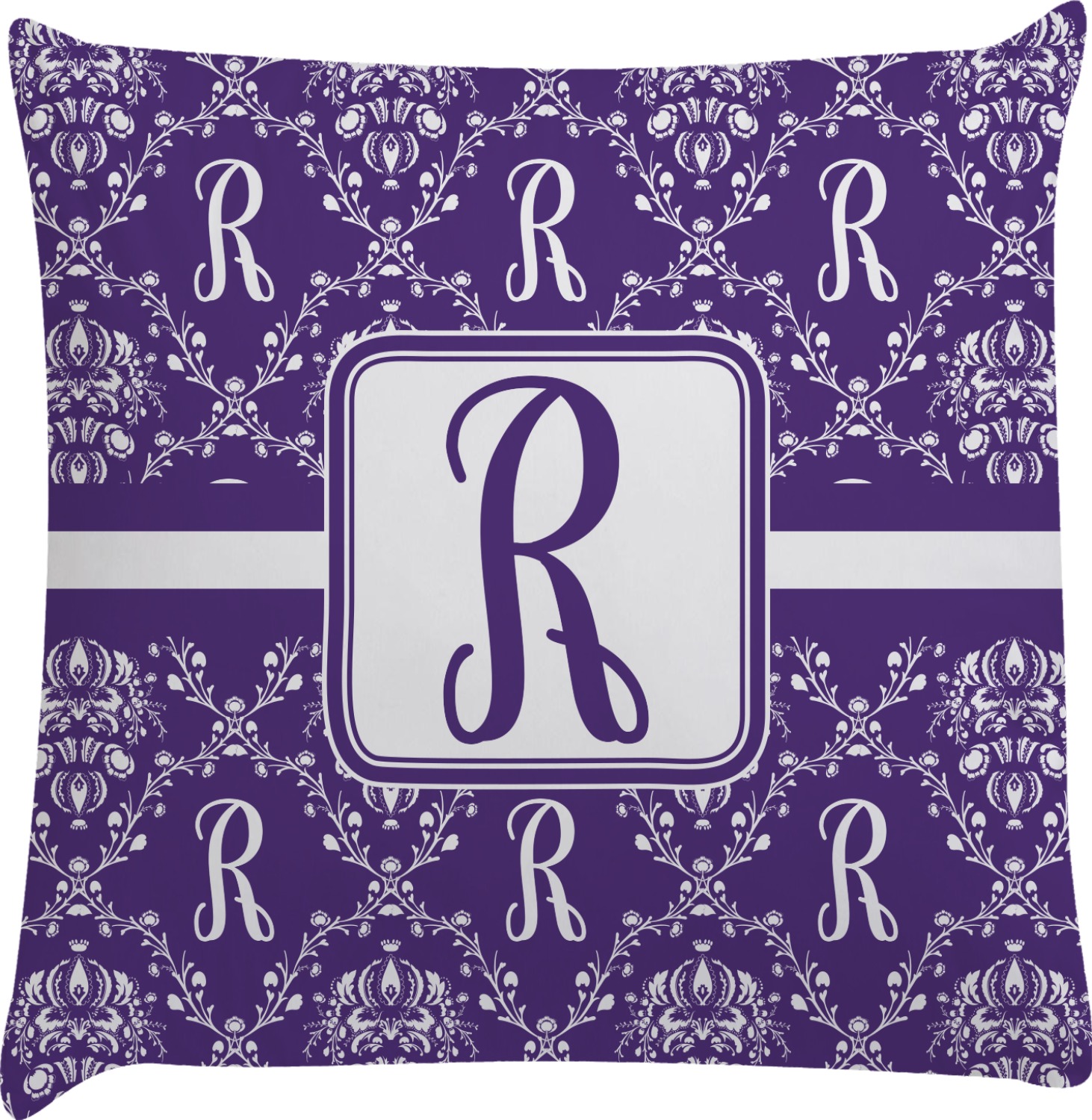 A touch of elegance at its best. The white Damask pattern pops against the backdrop of this rich purple. Personalized with your initial adds that touch of pride to the design. A wide band of purple and white break up the design to make it pleasing to the eye.