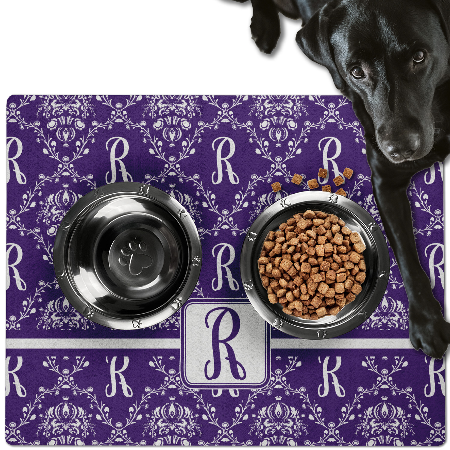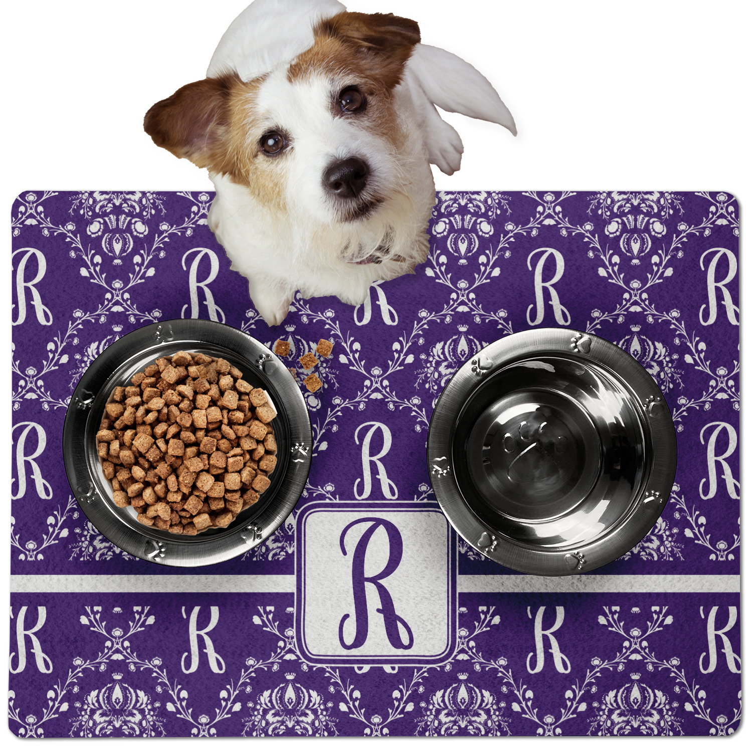 This dog bowl mat, fabricated from polyester, proudly displays your customized design on its top, while its bottom includes a non-slip rubber. This feature allows it to remain firmly in place, even when your dog spills his/her water. With 3 sizes available (18" x 12", 24" x 18", 30" x 24"), the pet food mat has ample space for both a food and water bowl for any sized dogs. Though specified for dogs' use, these mats are also a splendid option for cats.