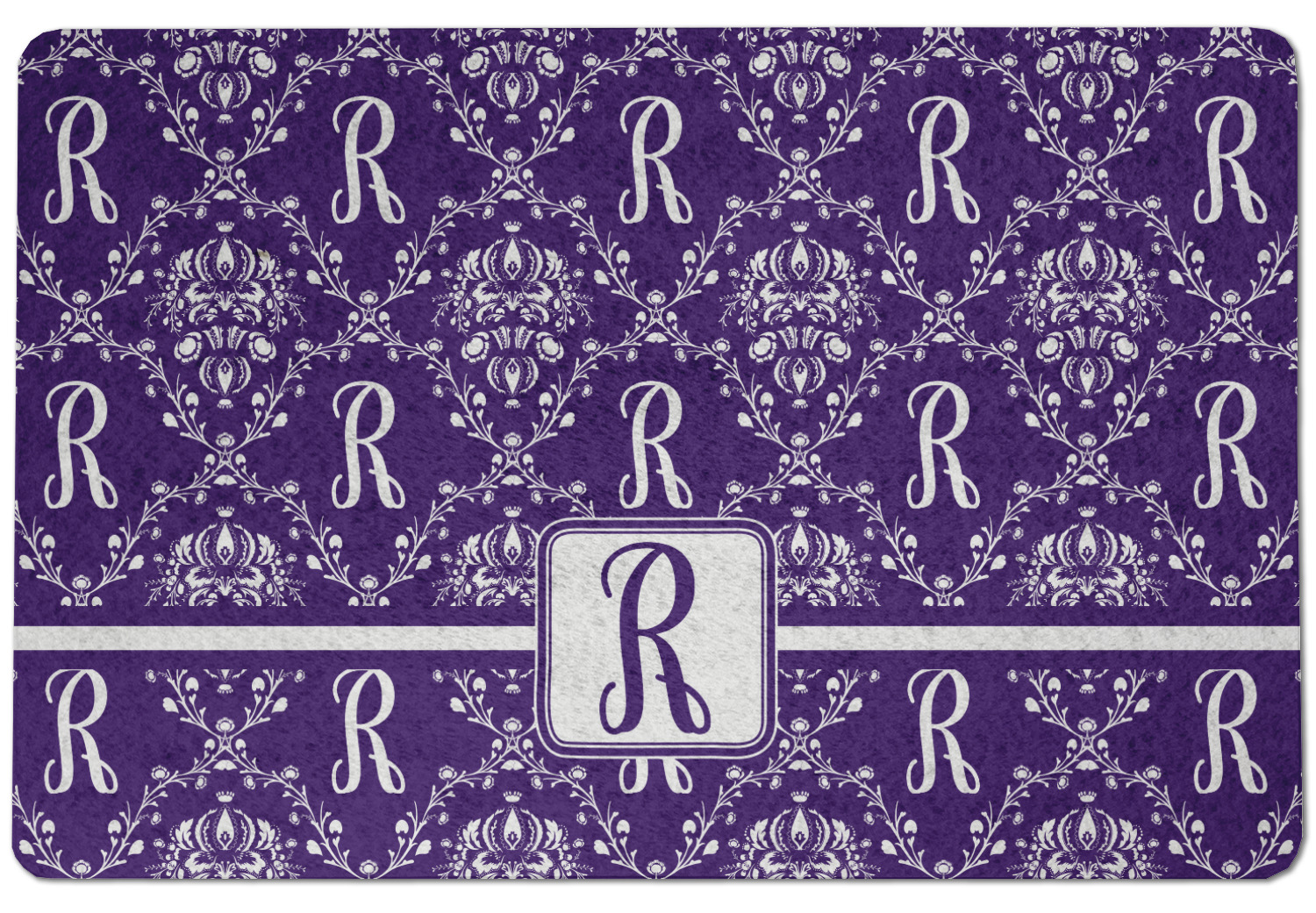 A touch of elegance at its best. The white Damask pattern pops against the backdrop of this rich purple. Personalized with your initial adds that touch of pride to the design. A wide band of purple and white break up the design to make it pleasing to the eye.