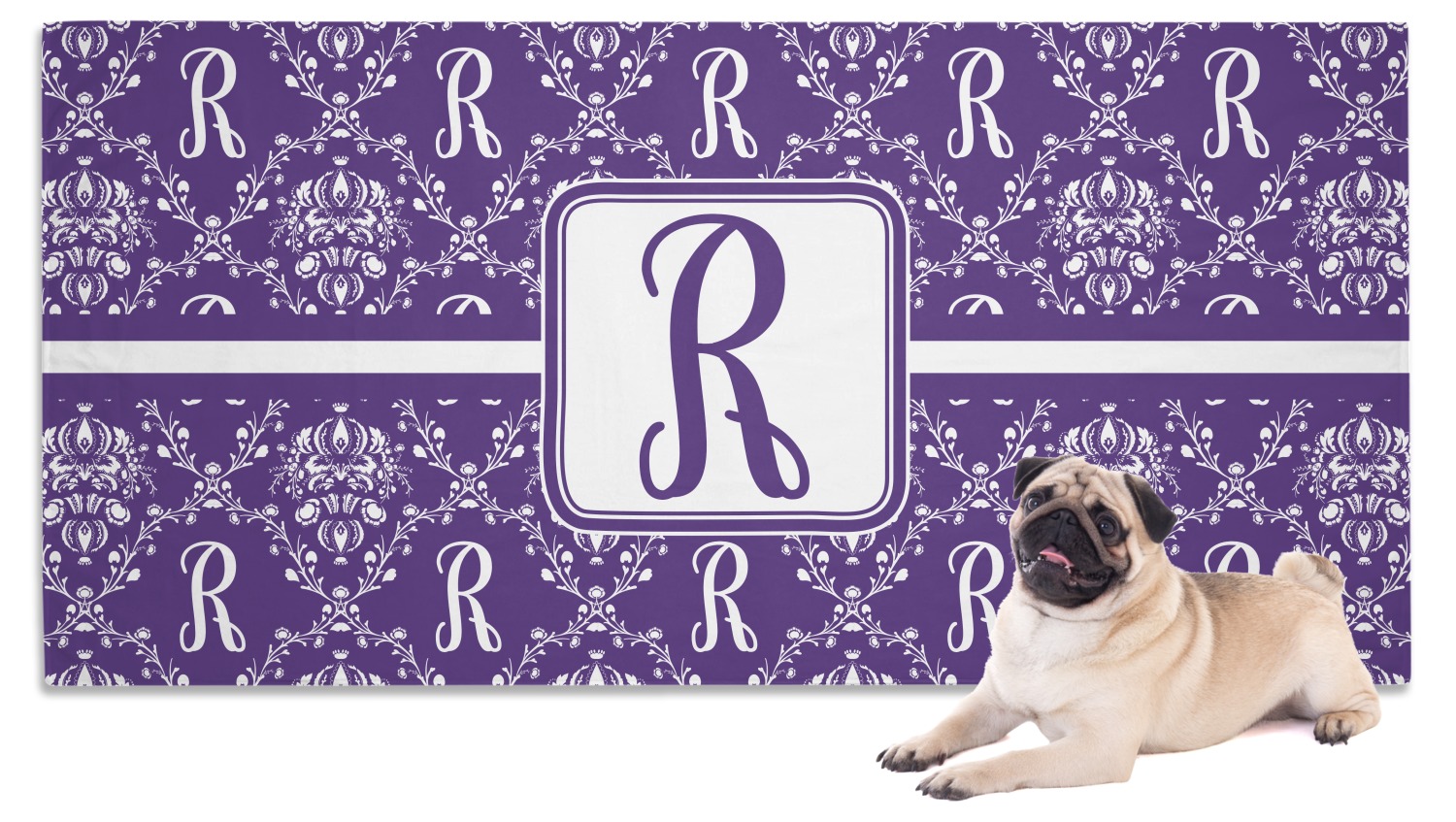 A touch of elegance at its best. The white Damask pattern pops against the backdrop of this rich purple. Personalized with your initial adds that touch of pride to the design. A wide band of purple and white break up the design to make it pleasing to the eye.