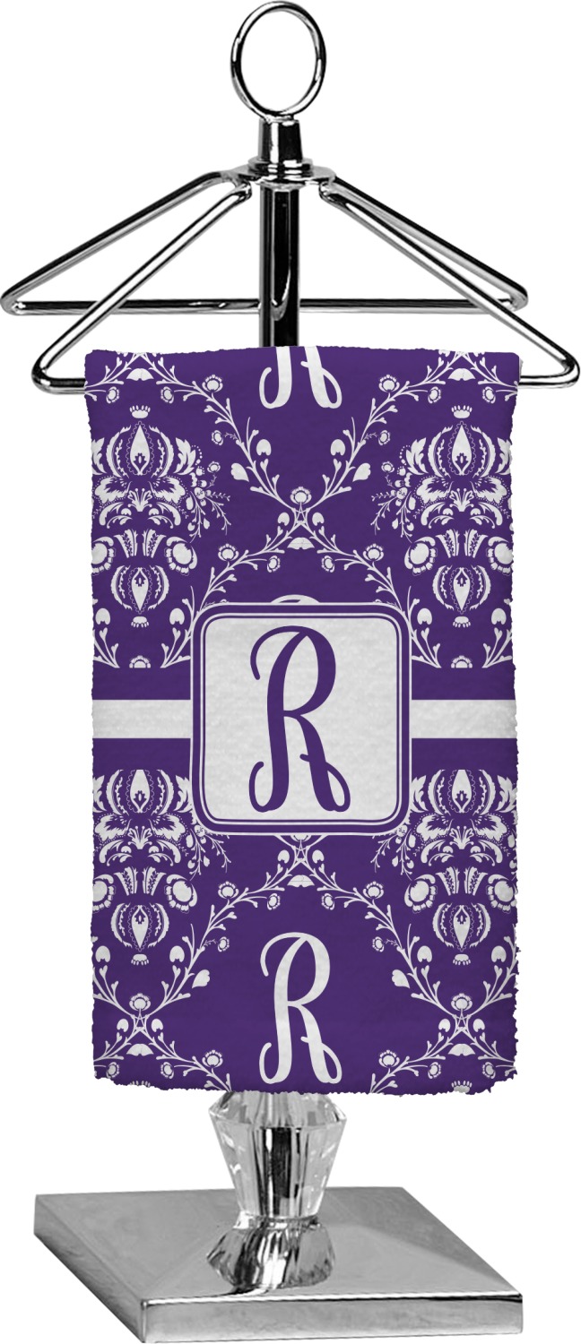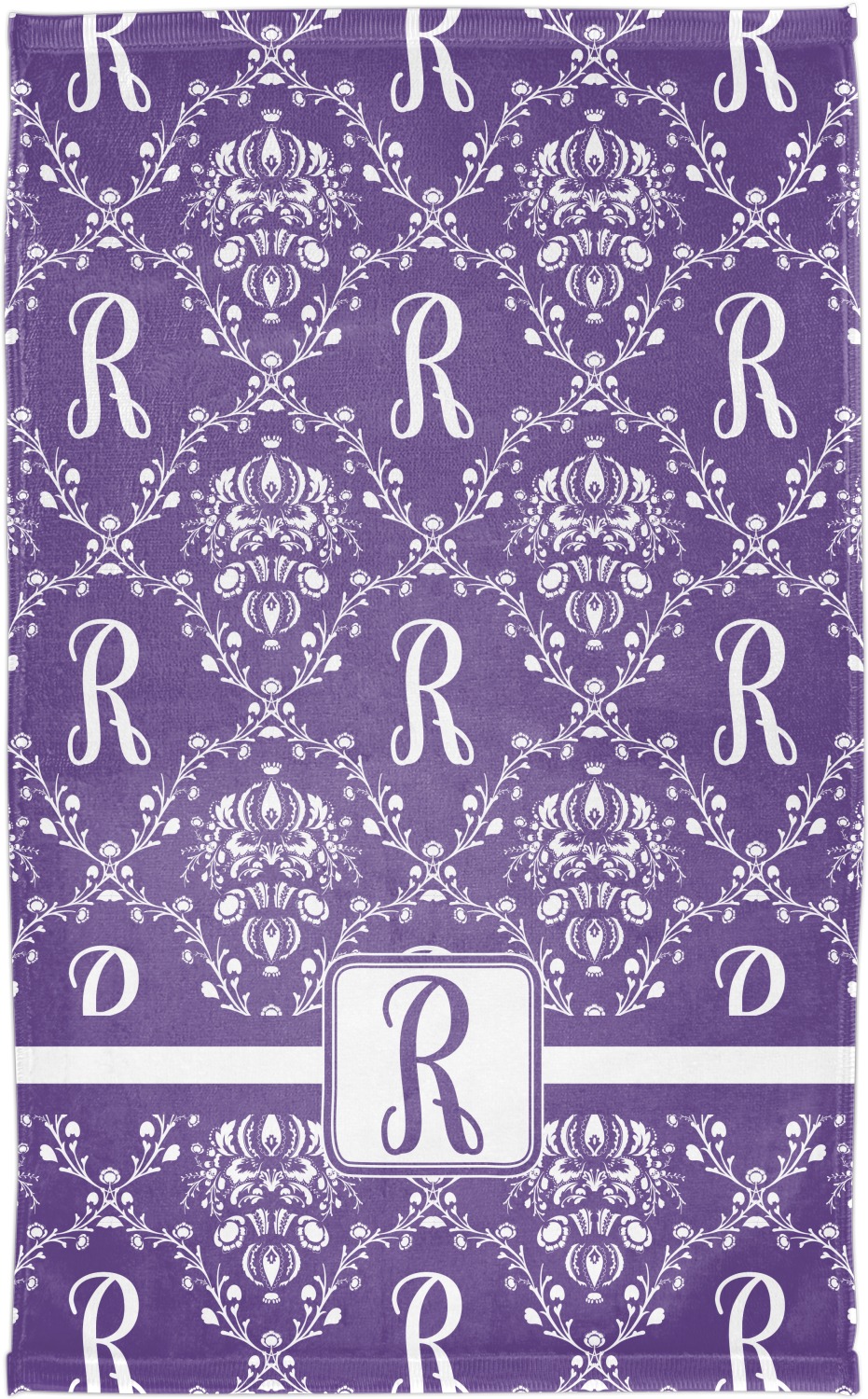 A touch of elegance at its best. The white Damask pattern pops against the backdrop of this rich purple. Personalized with your initial adds that touch of pride to the design. A wide band of purple and white break up the design to make it pleasing to the eye.