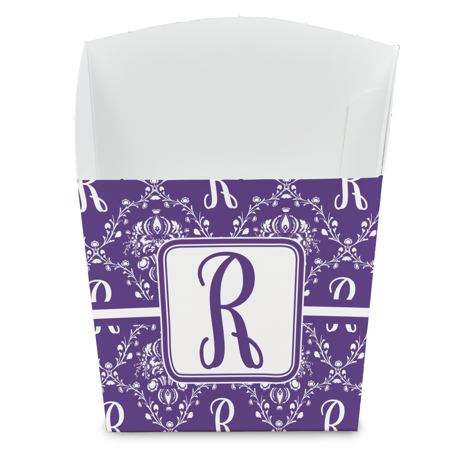 A touch of elegance at its best. The white Damask pattern pops against the backdrop of this rich purple. Personalized with your initial adds that touch of pride to the design. A wide band of purple and white break up the design to make it pleasing to the eye.
