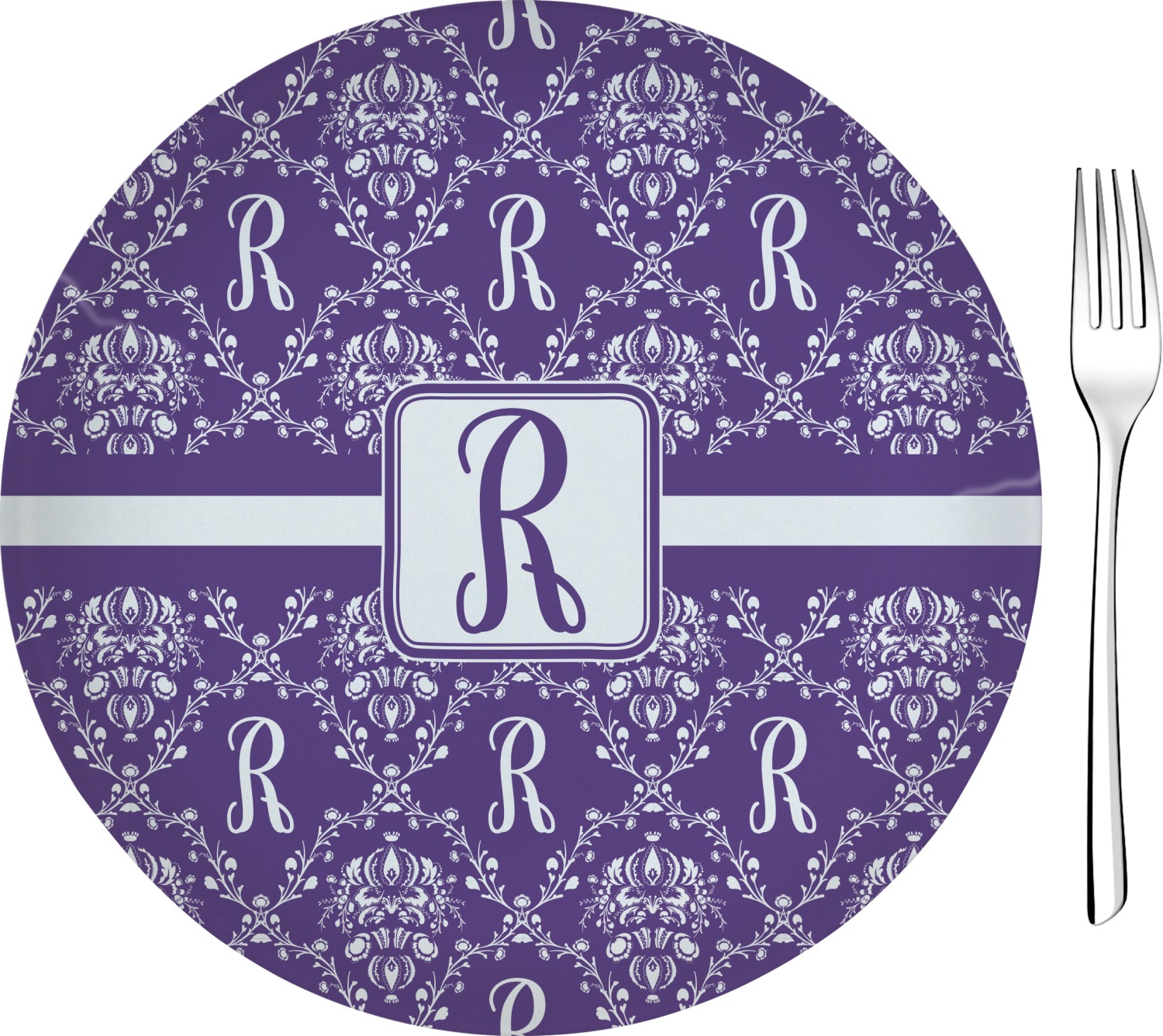 A touch of elegance at its best. The white Damask pattern pops against the backdrop of this rich purple. Personalized with your initial adds that touch of pride to the design. A wide band of purple and white break up the design to make it pleasing to the eye.