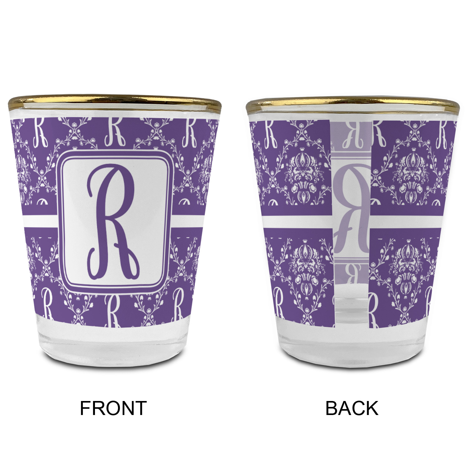A touch of elegance at its best. The white Damask pattern pops against the backdrop of this rich purple. Personalized with your initial adds that touch of pride to the design. A wide band of purple and white break up the design to make it pleasing to the eye.