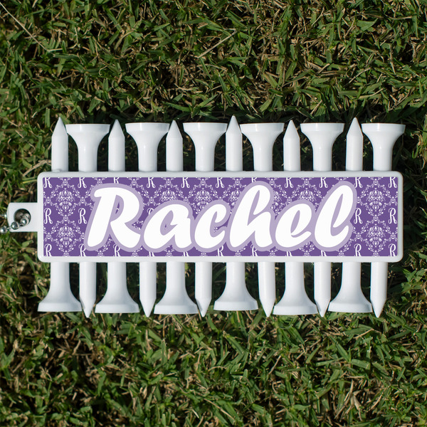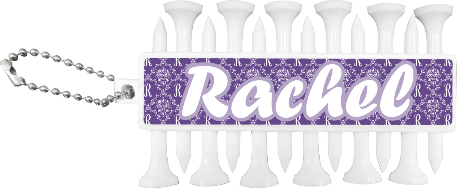With 12 tees on a lightweight, portable key chain, it almost ensures a great 18 holes. Our tees are made of white plastic and are a little over 2". Design the front and the back of the golf tee holder. Pick from over a hundred designs, colors, and personalization styles! The set even comes with three removable ball markers as well!