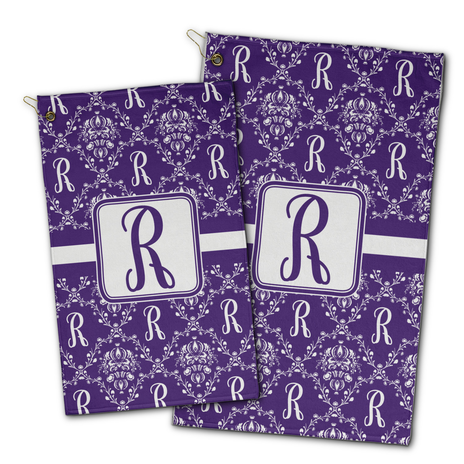 A touch of elegance at its best. The white Damask pattern pops against the backdrop of this rich purple. Personalized with your initial adds that touch of pride to the design. A wide band of purple and white break up the design to make it pleasing to the eye.