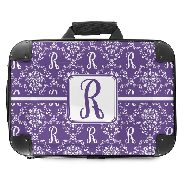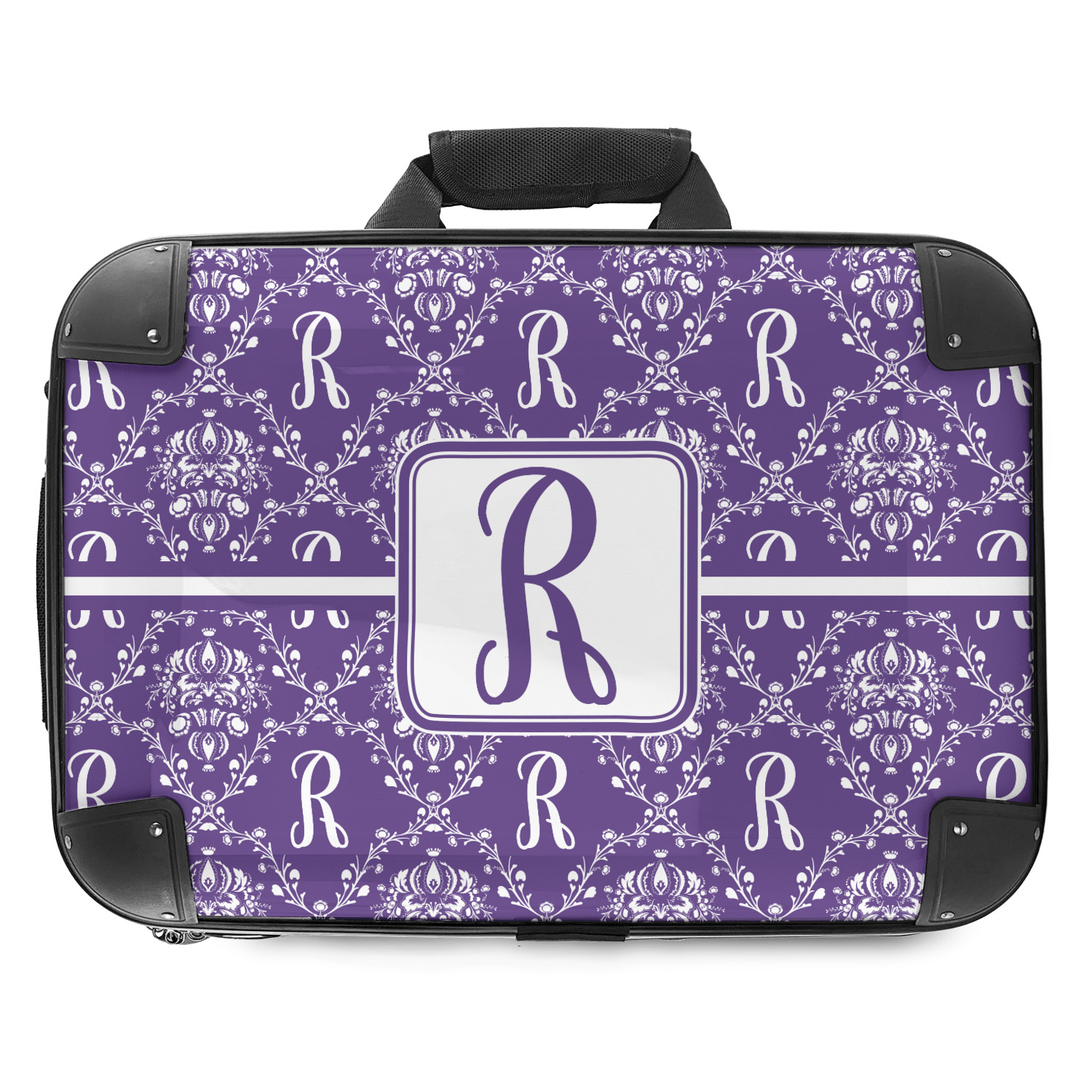 A touch of elegance at its best. The white Damask pattern pops against the backdrop of this rich purple. Personalized with your initial adds that touch of pride to the design. A wide band of purple and white break up the design to make it pleasing to the eye.
