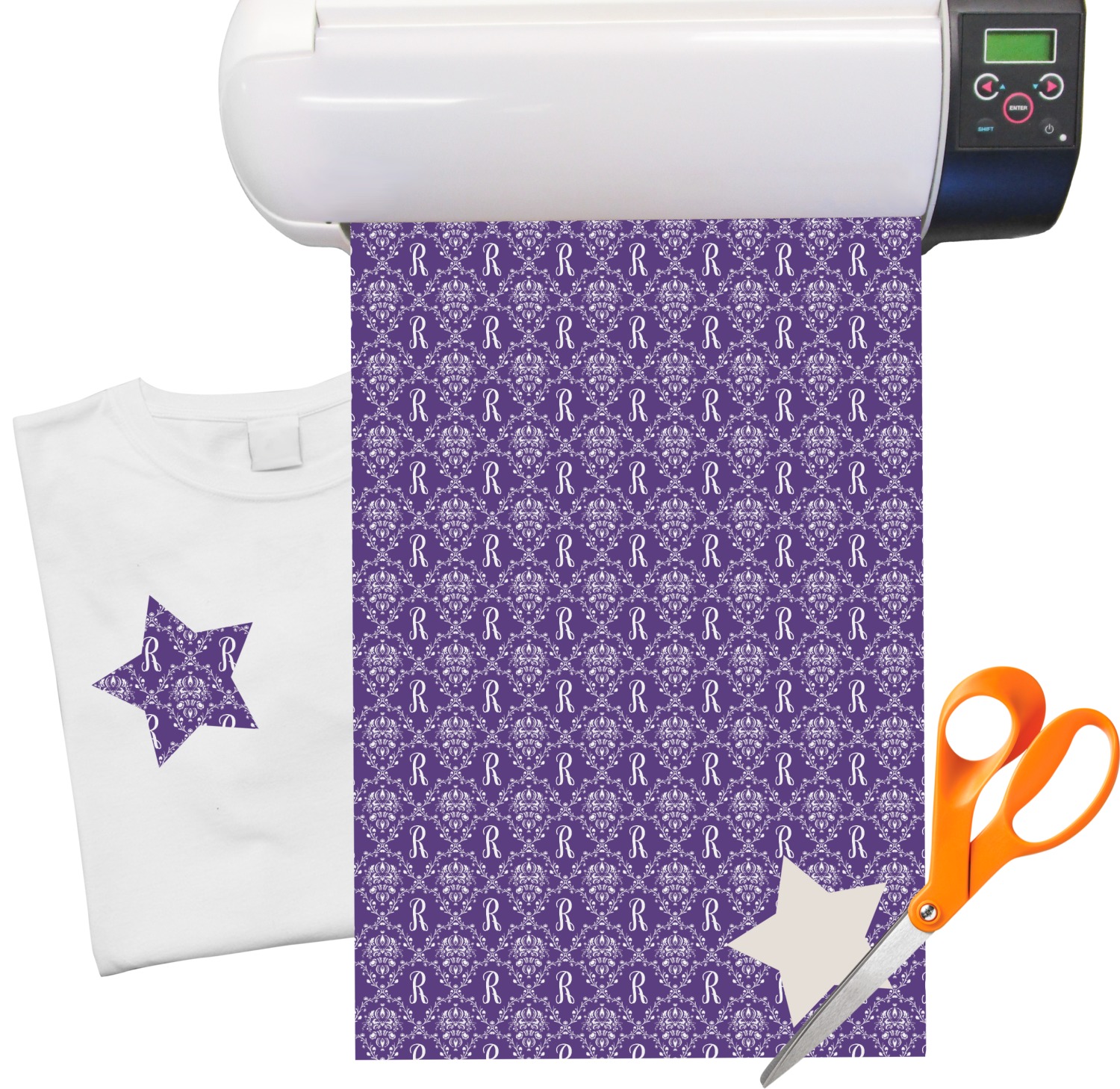 You can cut out your name, a monogram, or any designs with a pair of scissors or with any hobby cutter. You can create thousands of decorations that can be ironed on to anything that is cotton, polyester, or a cotton/poly blend!!