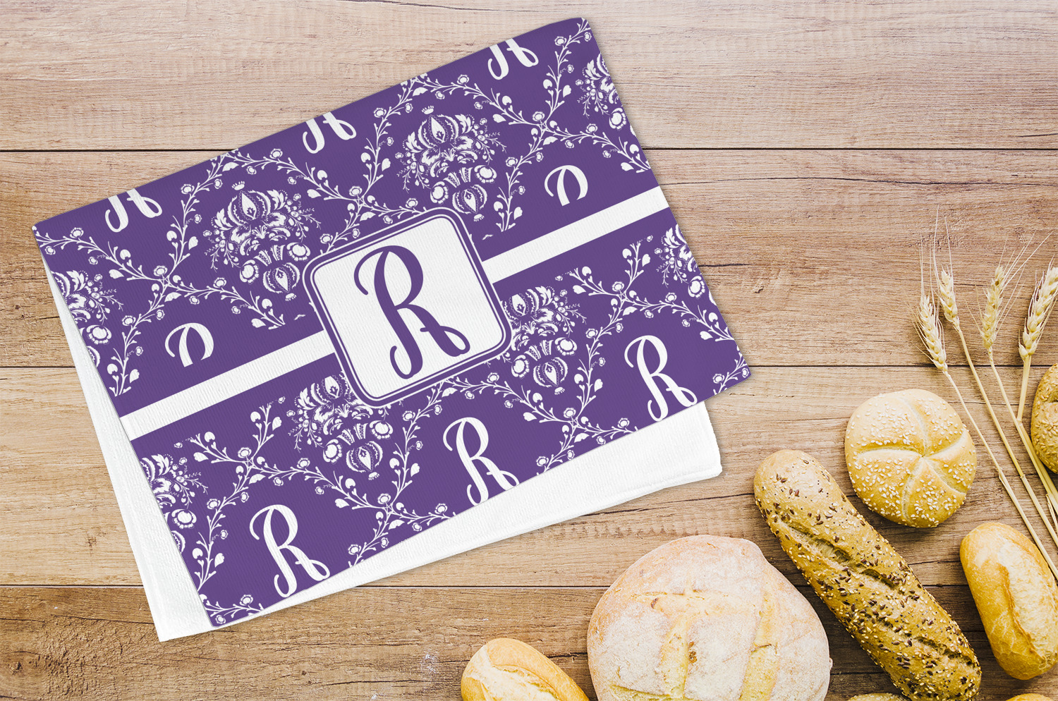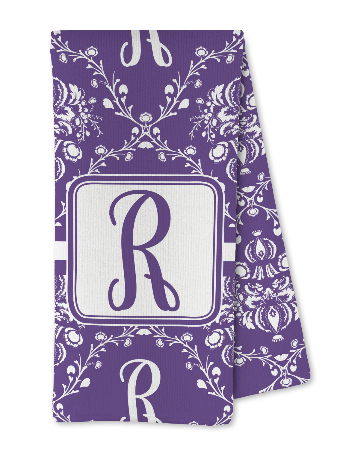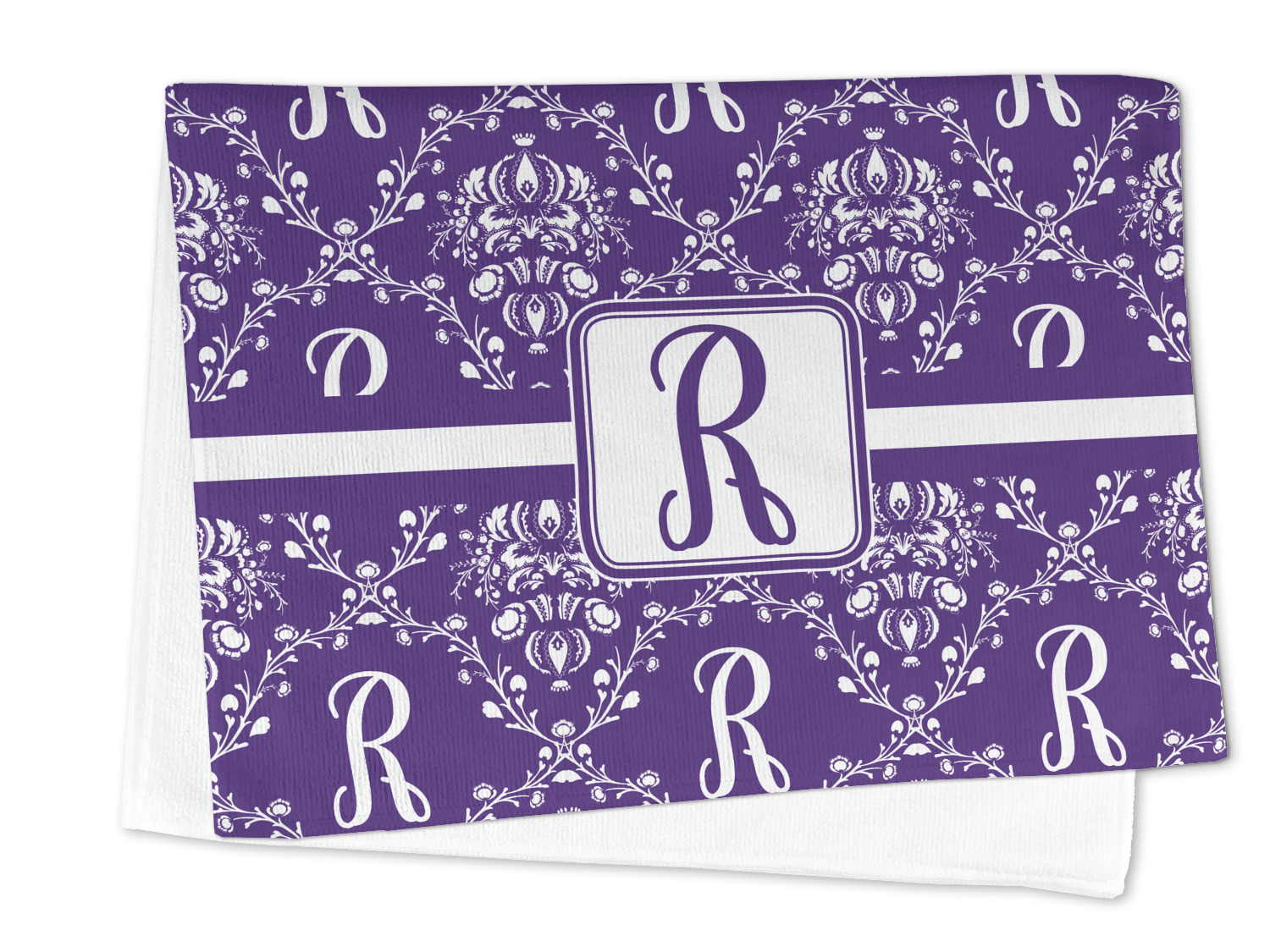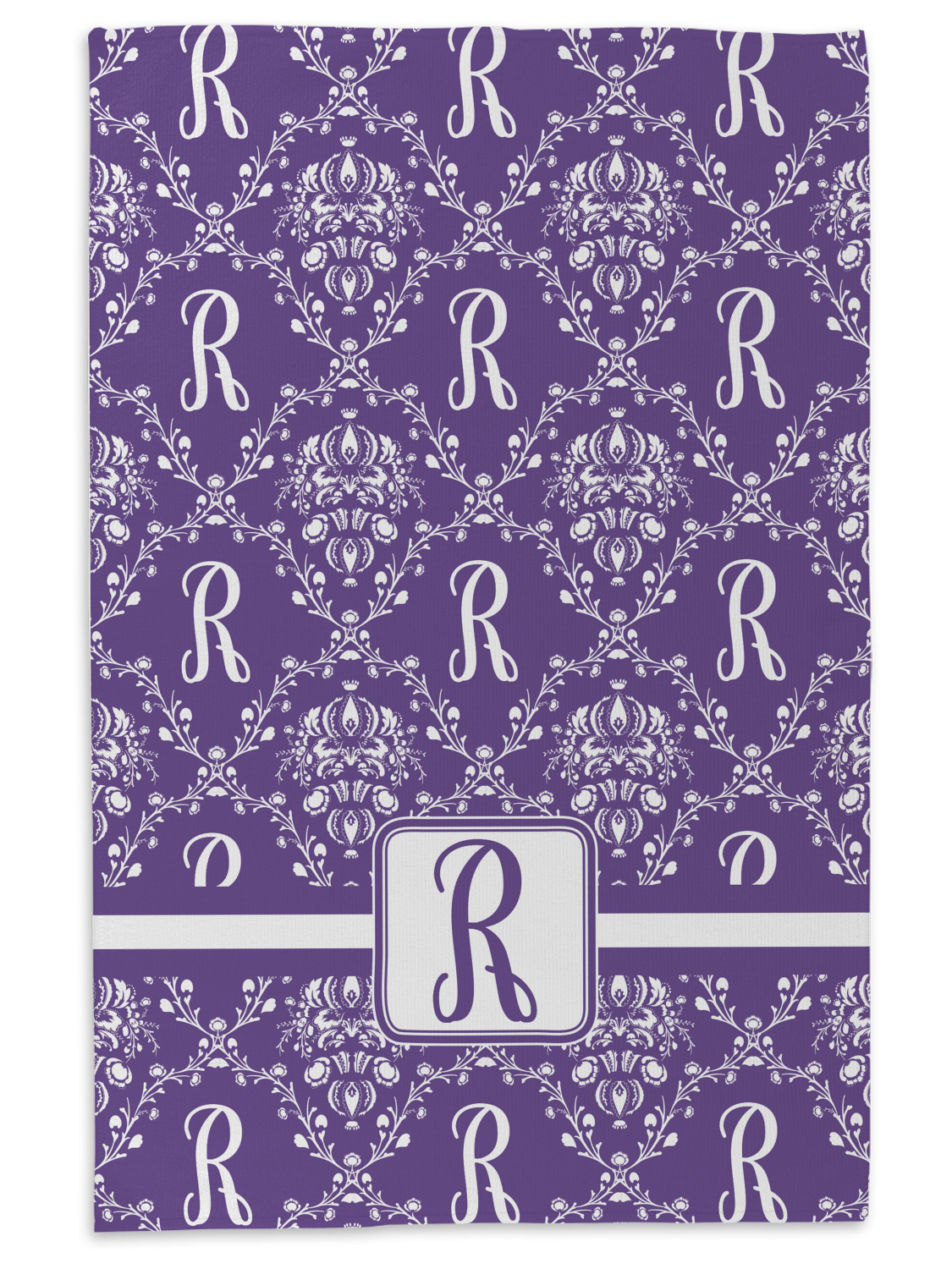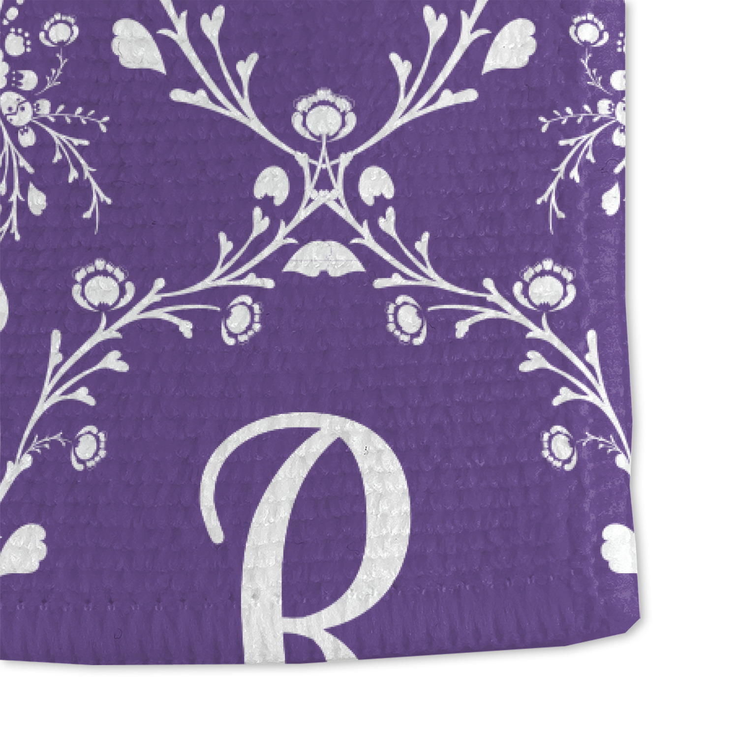 A touch of elegance at its best. The white Damask pattern pops against the backdrop of this rich purple. Personalized with your initial adds that touch of pride to the design. A wide band of purple and white break up the design to make it pleasing to the eye.