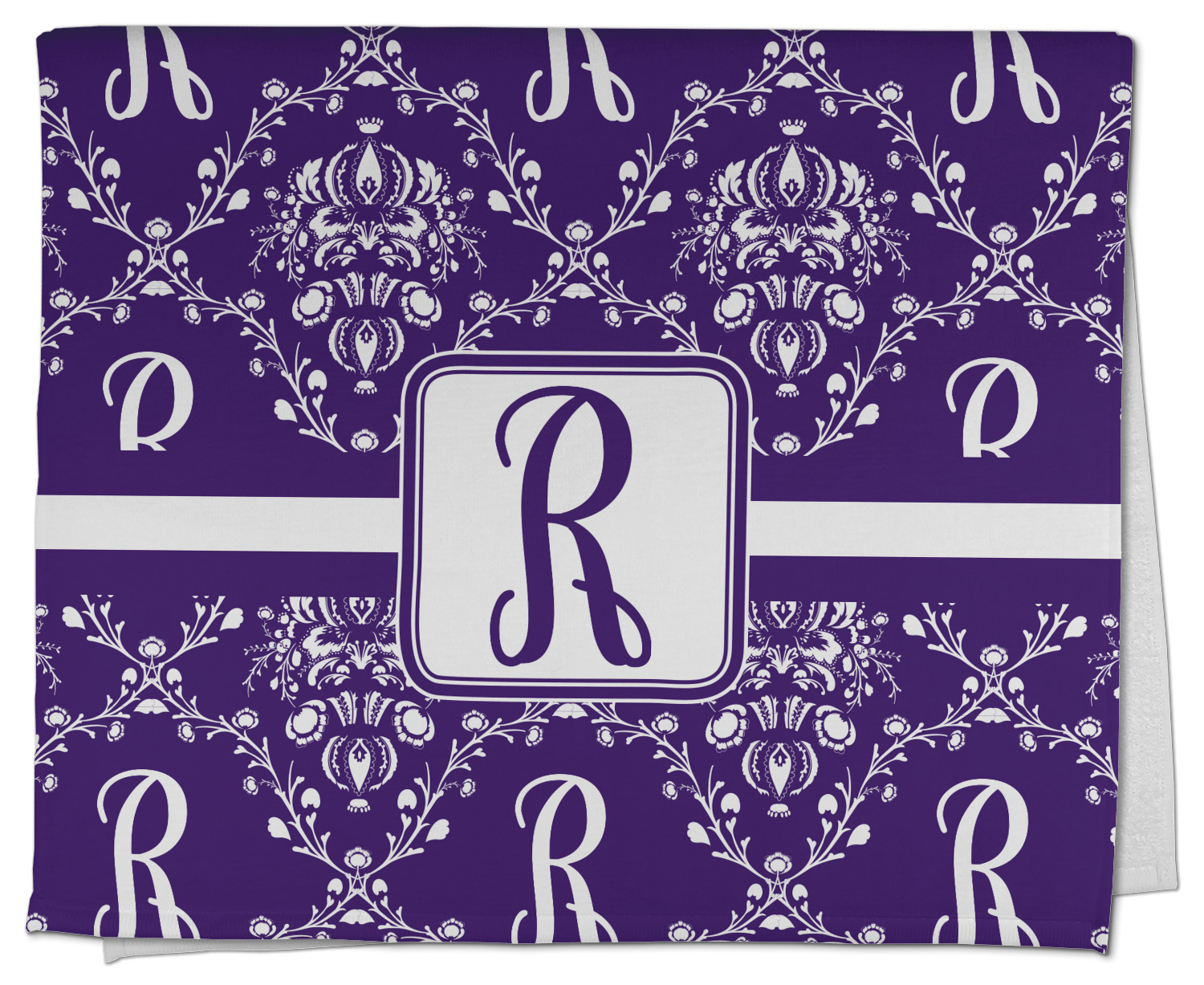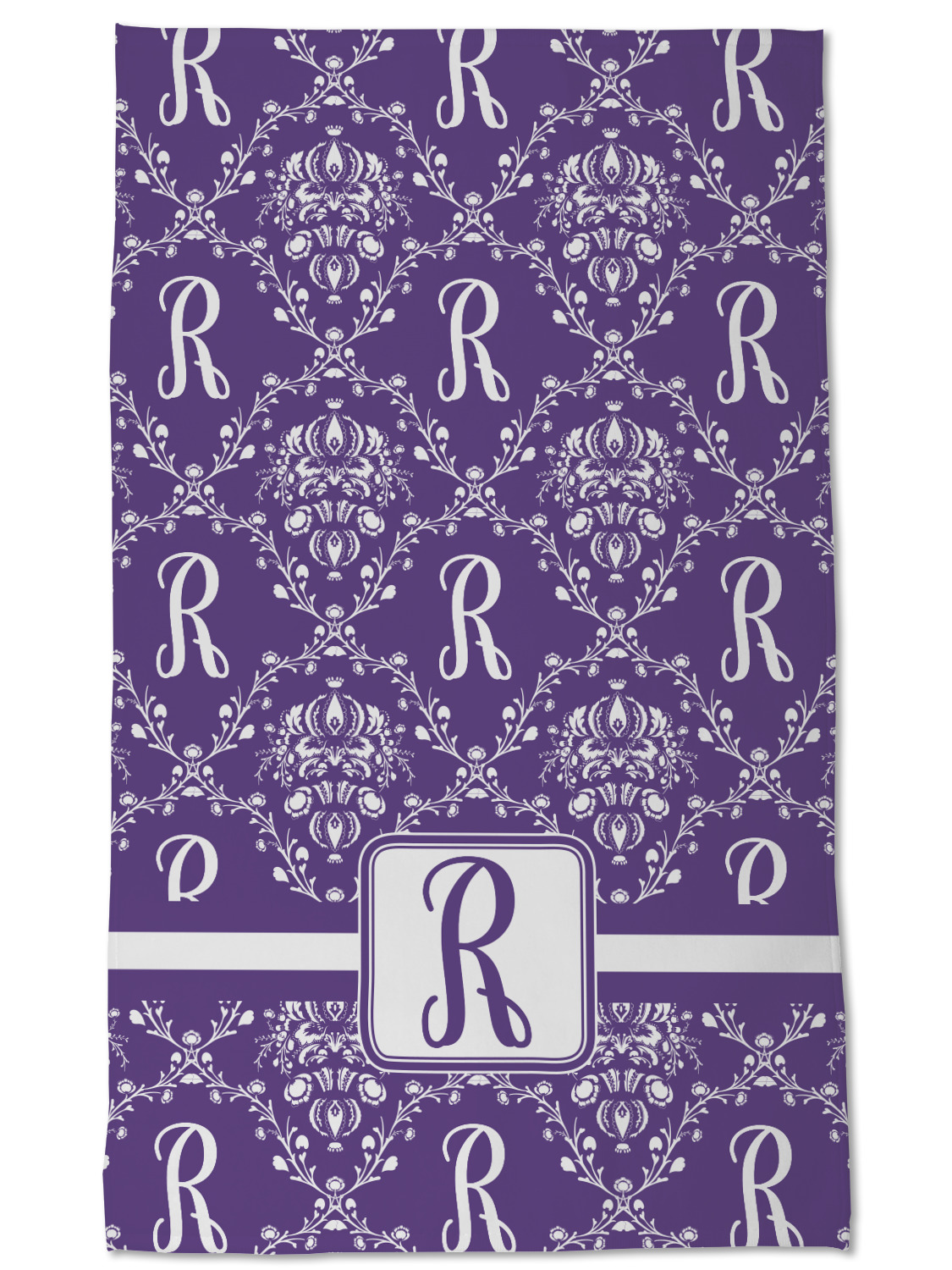A touch of elegance at its best. The white Damask pattern pops against the backdrop of this rich purple. Personalized with your initial adds that touch of pride to the design. A wide band of purple and white break up the design to make it pleasing to the eye.