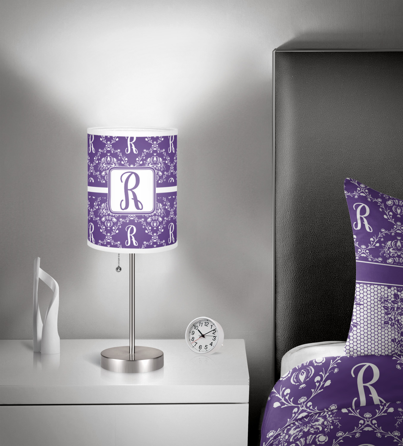 A touch of elegance at its best. The white Damask pattern pops against the backdrop of this rich purple. Personalized with your initial adds that touch of pride to the design. A wide band of purple and white break up the design to make it pleasing to the eye.