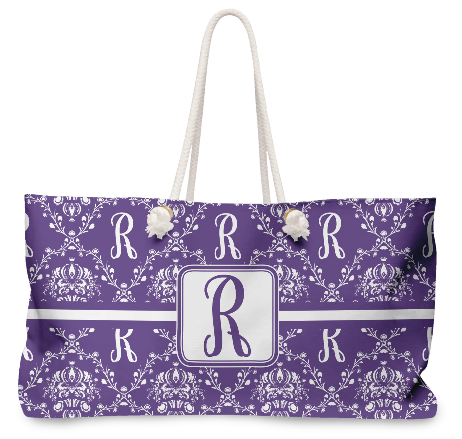 A touch of elegance at its best. The white Damask pattern pops against the backdrop of this rich purple. Personalized with your initial adds that touch of pride to the design. A wide band of purple and white break up the design to make it pleasing to the eye.
