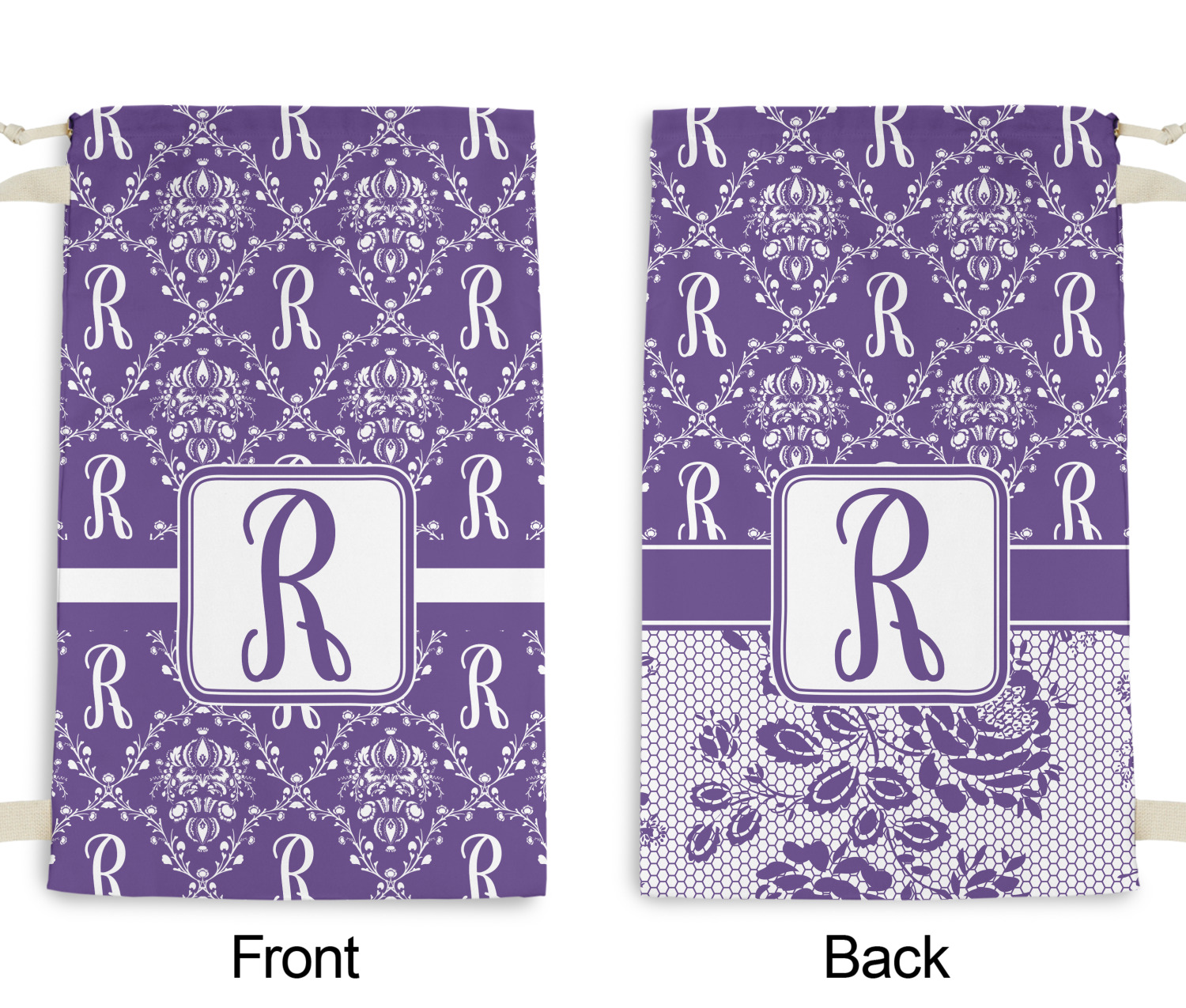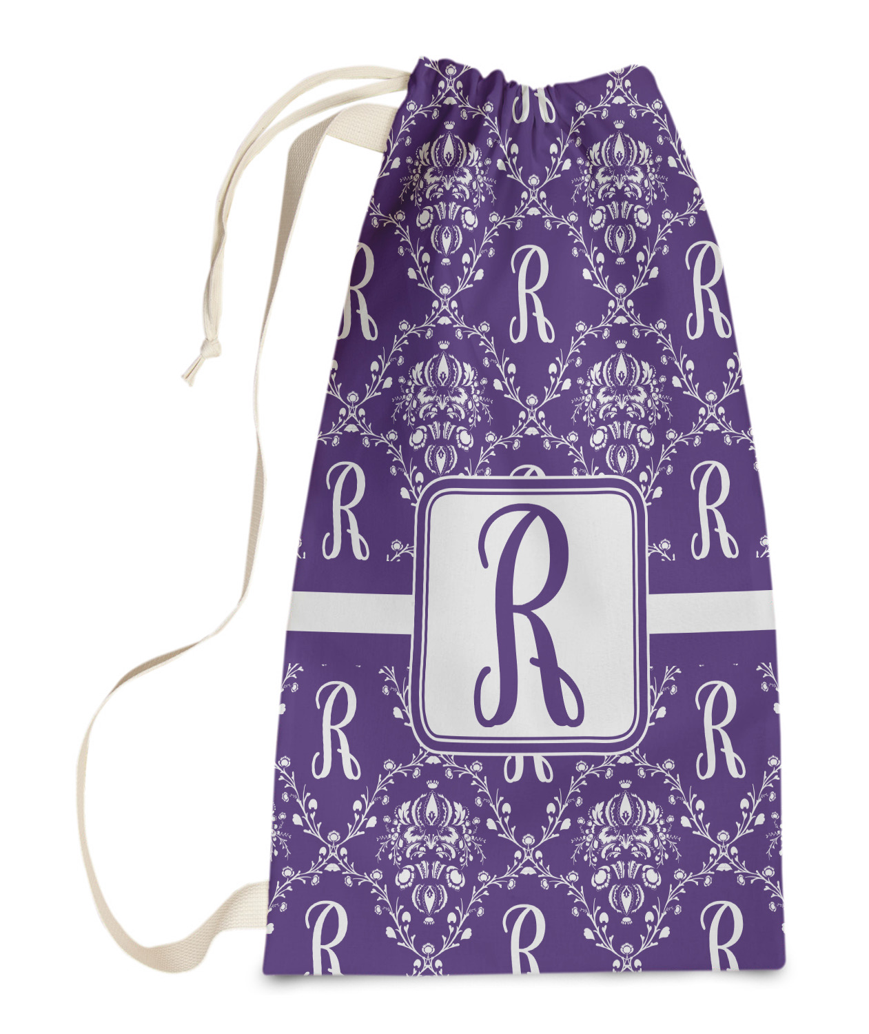 A touch of elegance at its best. The white Damask pattern pops against the backdrop of this rich purple. Personalized with your initial adds that touch of pride to the design. A wide band of purple and white break up the design to make it pleasing to the eye.