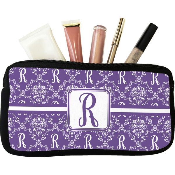 Our personalized makeup bags are available in many different designs, patterns and colors - so you are sure to find one that will love. They are made of neoprene (same material as wet-suits) and thus are water resistant, so spillages in your makeup bag will not end up all over you purse. They are customized on one side and are black on the other side and the zipper is black as well.